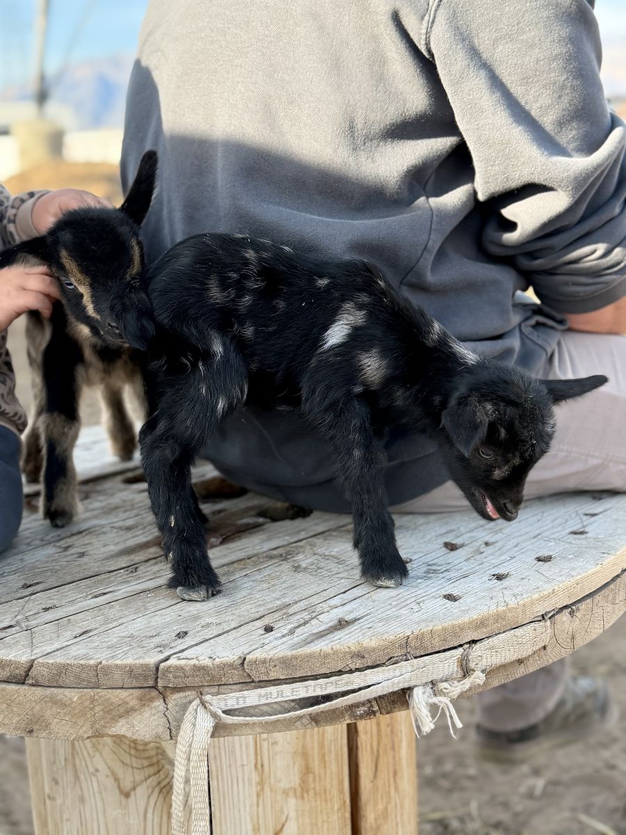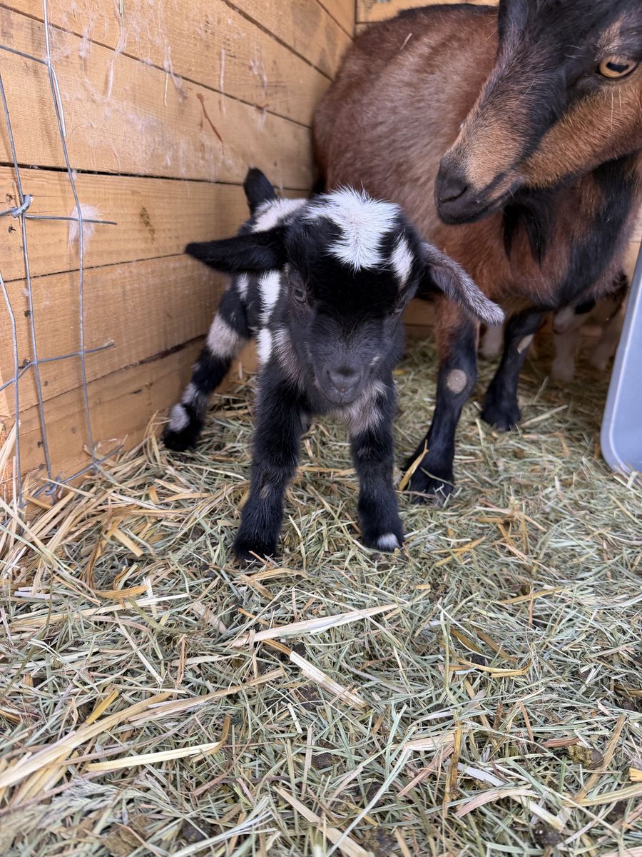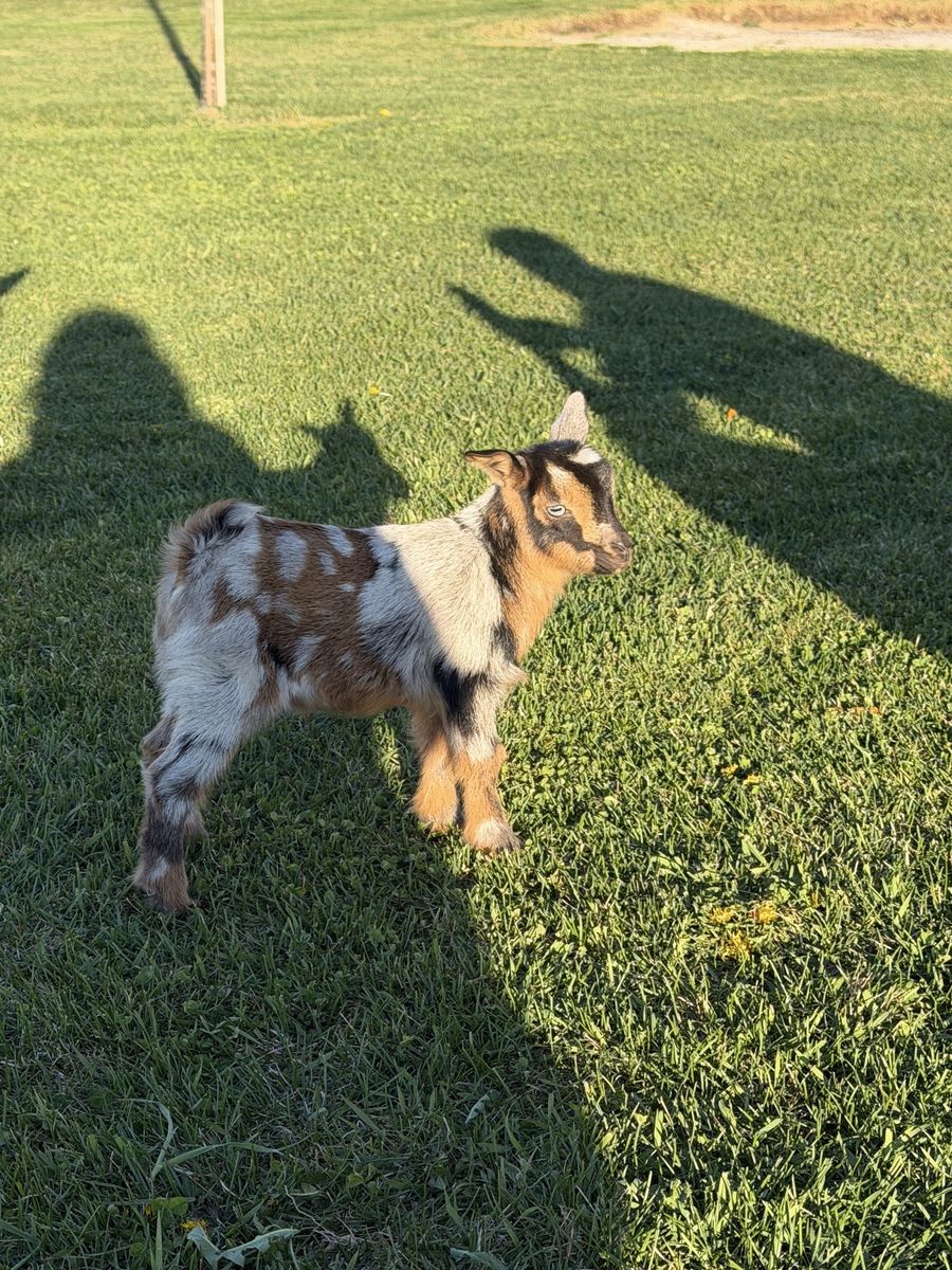 VenmoNigerian Dwarf kids Kidding season has started and we are taking deposits for babies We currently have a tricolored blue eye doeling covered in moon spots born March 29 $250 ($100 deposit) RESERVED Black bucking with moon spots $150 born March 29 ($50 deposit) RESERVED Gold Buckling with blue eyes born April 1 $150 ($100 deposit) Chamoise buckling with blue eyes born April 1 $100 ($50 deposit) White/buckskin doeling with blue eyes born April 9 $250 ($100 deposit) Black and white moonspotted boy born April 9 $150 ($50 deposit) Buckskin boy with blue eyes born April 7 $125 ($50 deposit) Black boy with moon spots $125 ($50 deposit)