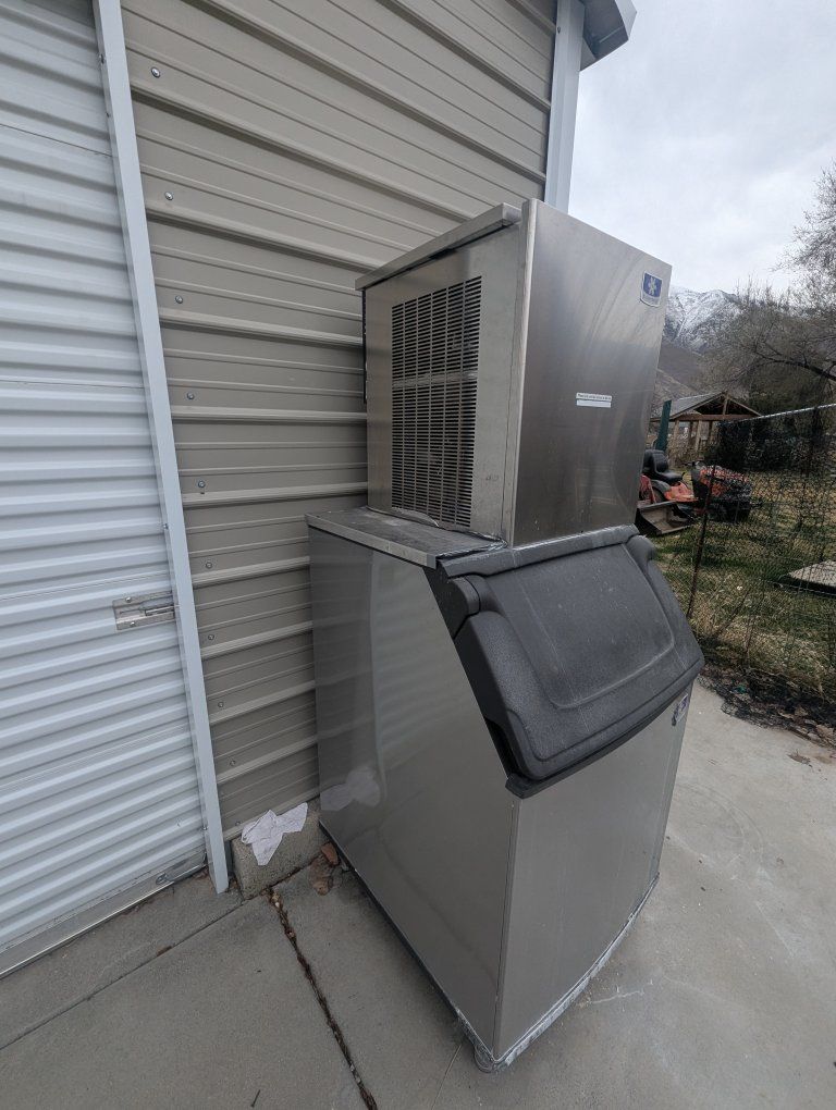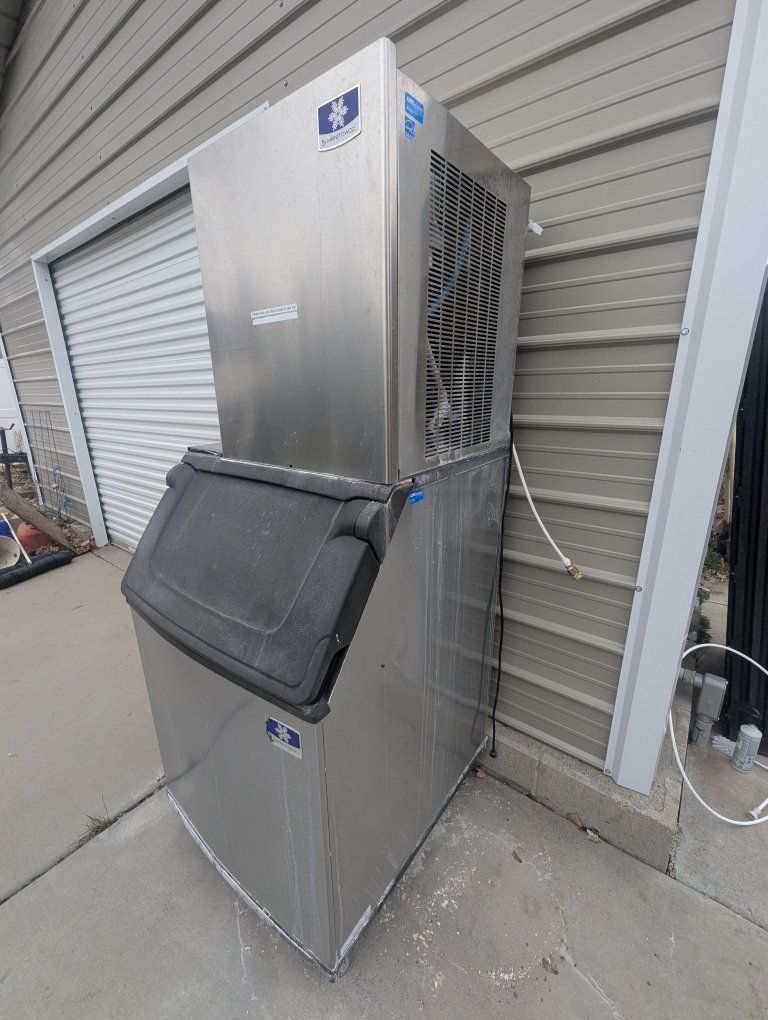 Manitowic ice machine.Just deep cleaned ( other than some hard water spots from sitting outside) everything works like it's supposed to and this thing will make more ice than you could ever use in a day.
