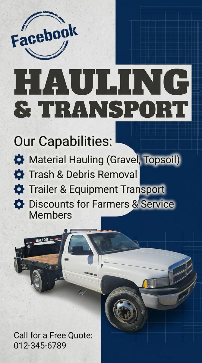 hi im hoping to get started with small business opportunity. go from idaho to salt lake. 25% off for new Customer's service men and women plus farmers all get discounted we want to help those that have served and that keep america going we thank you all. sand gravel pit runoff topsoil roadbase. we also offer junk removal we load and take away gooseneck and bumper trailer moved price pending distance
