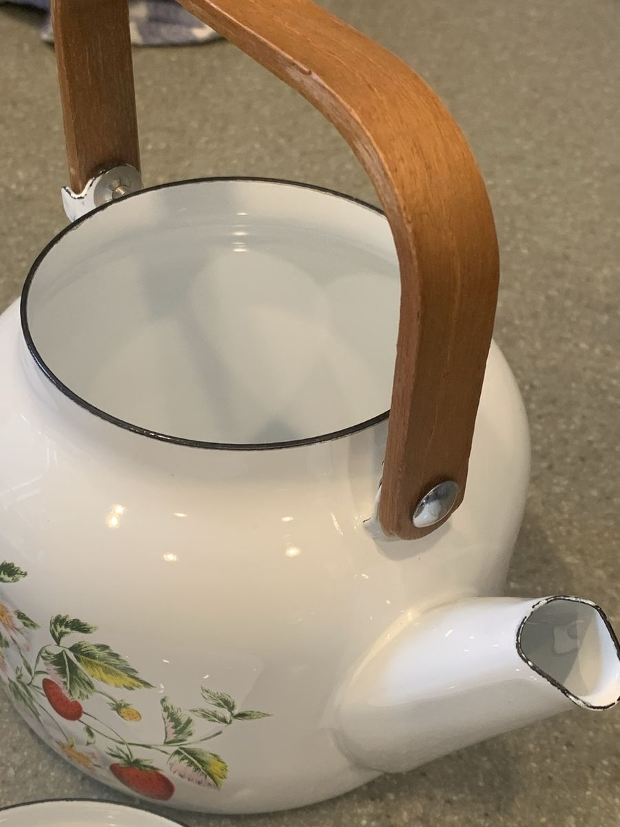 Wooden Handle Accent, 7” Wide W/ Spout , 7” Tall With Handle. Never Used
