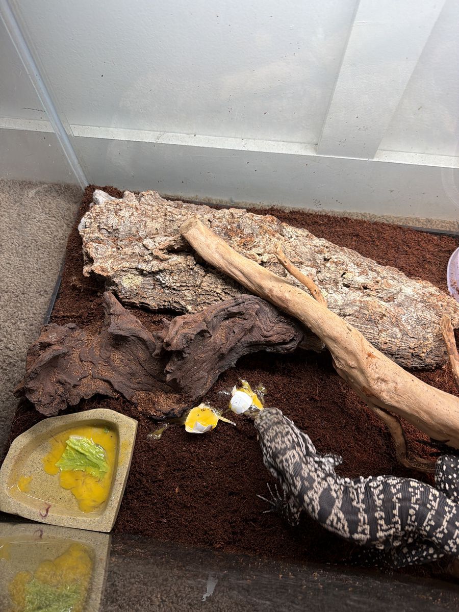 VenmoJust a little over a year old female tegu and about 2 feet long. She’s been awesome. She has never bitten and is very calm. She isn’t a fan of being picked up but will tolerate it. she does great just roaming and loves to be pet. Selling because she has out grown her 75 gallon and I have to move away and new place won’t have space for the enclosure size she will need. asking 200 for her. can add in cage for extra 50, but no lights will be included as i’ll use them for my smaller reptiles. She will need a larger enclosure. dubia.com and eco flex mojave both have cheap good options.