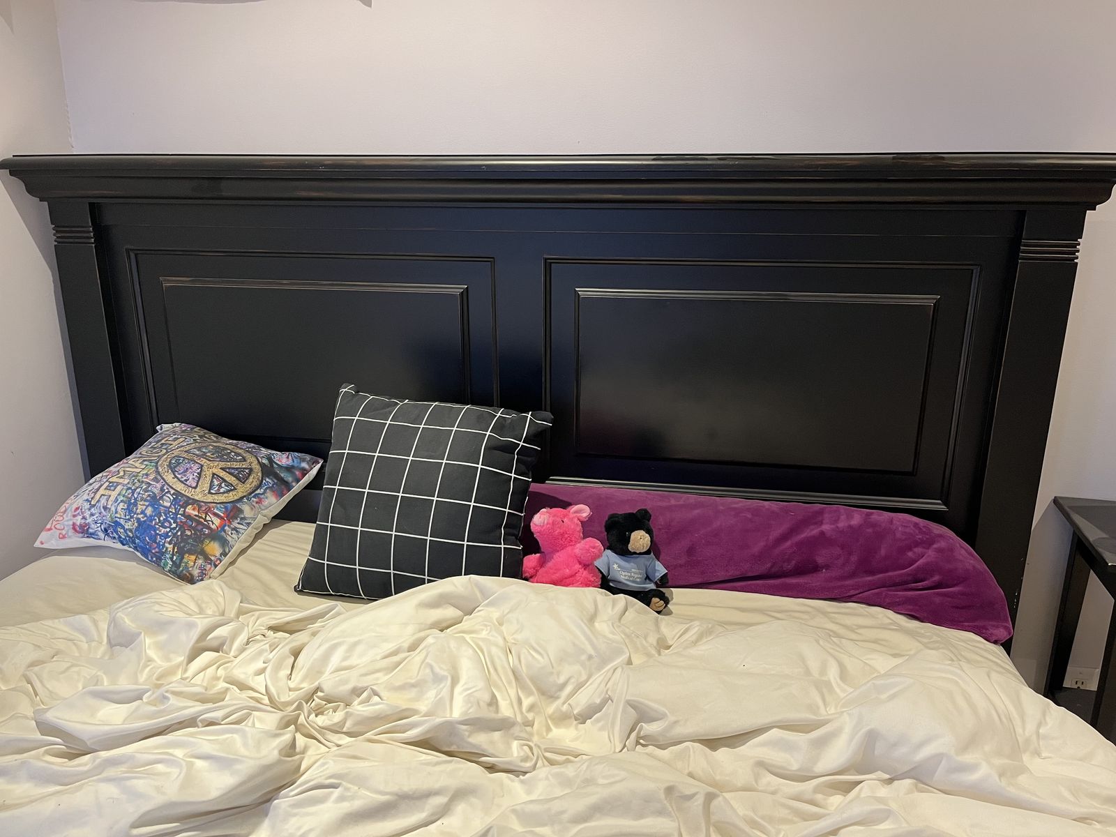 King size bed, frame, headboard, etc. also mattress is in decent shape