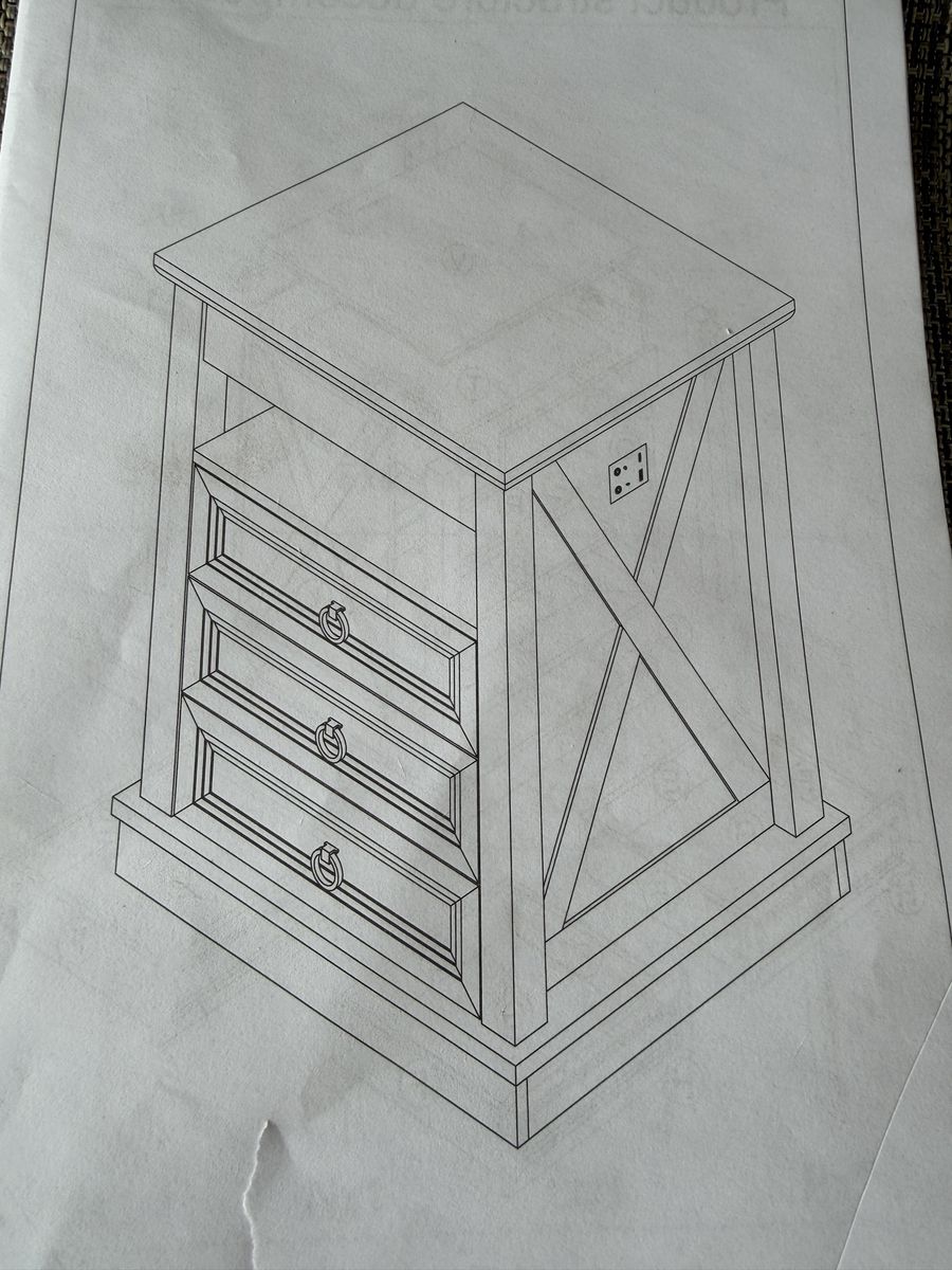 Clean, modern farmhouse-style nightstand with built-in charging—perfect for keeping your bedside organized and powered up. Brand new in box, ready to go!