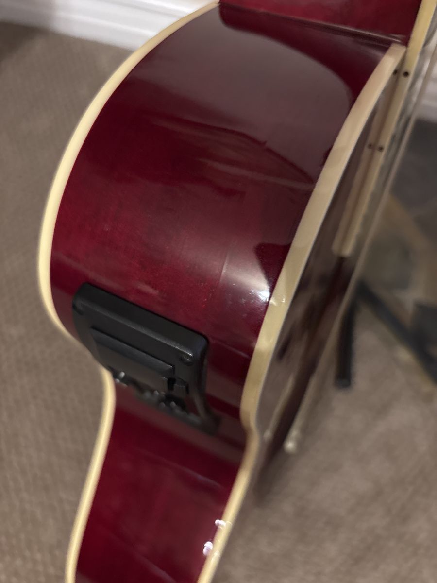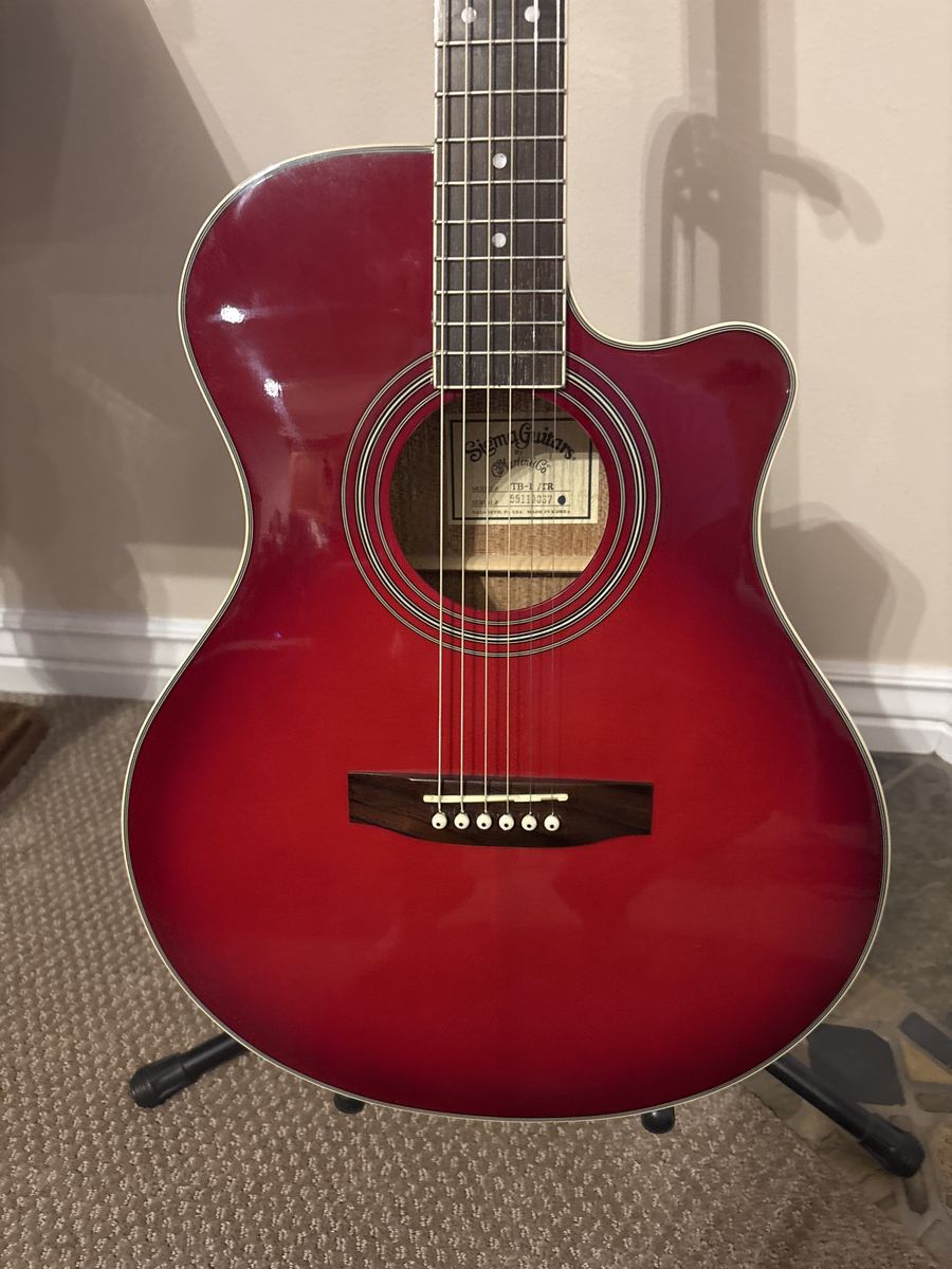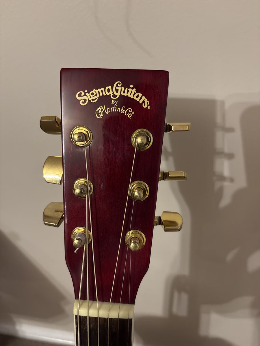 VenmoMartin Sigma TB-1/TR 000 size thin line guitar made in Korea Plays and sounds great. Looks beautiful. The only issue is a crack in the finish on the upper bout. This blemish does not extend through the wood which is a laminate. It can barely be seen in some light. I tried to show it in the photo but it is difficult to see. Other than that it is in beautiful condition. Asking 250 obo