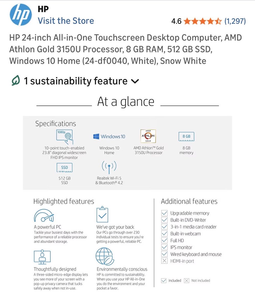 VenmoScreen is not cracked, but there must be some sort of crack underneath the screen to make this happen. Touch screen and computer still fully function able. I’ve factory reset it so it’s ready to go. I’m hopeful someone has the expertise to fix it so it doesn’t go to a recycle center or landfill. I purchased in 2021, but only used for 2 years then my work issued me a Mac. Comes with wireless mouse and keyboard combo. I included the info from Amazon for specification details. Let me know if you have questions.