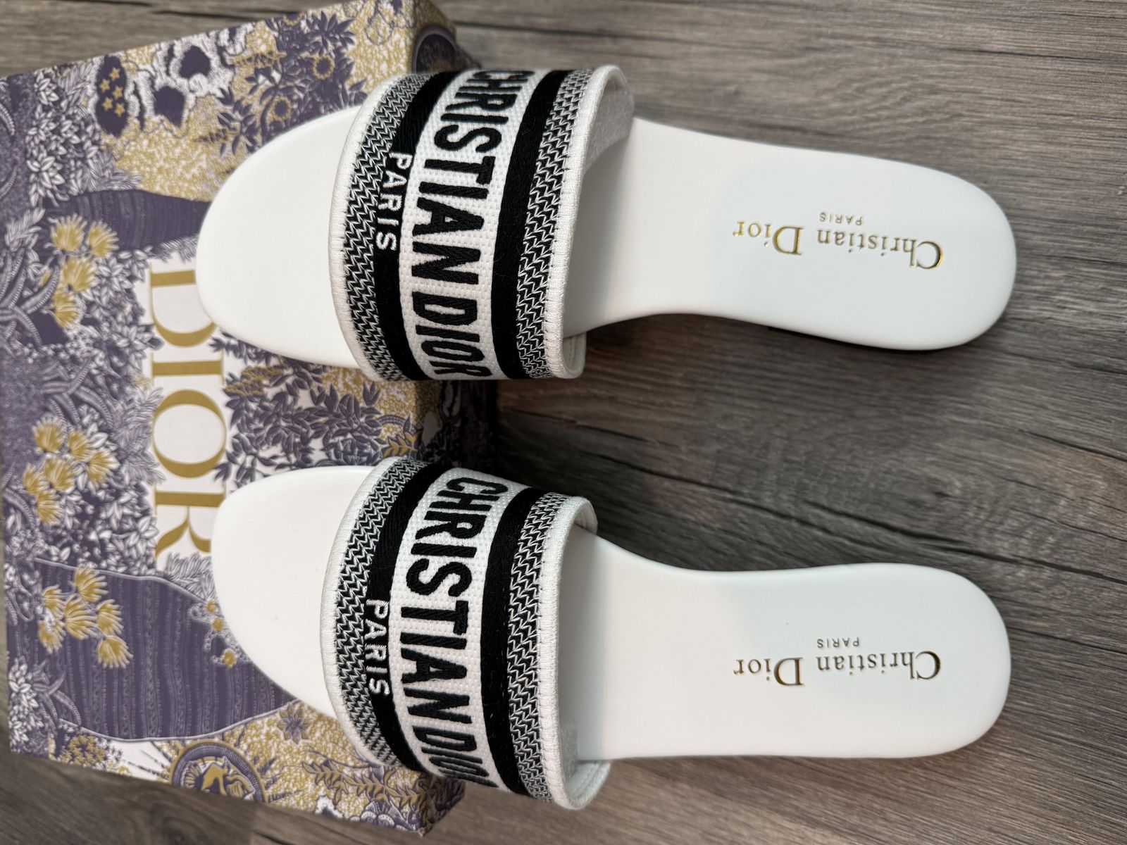 VenmoThe Dway slide has a timeless and emblematic silhouette. The slide's upper features a black embroidered Christian Dior Paris signature for an unmistakable touch. The streamlined design slips on easily and offers effortless style