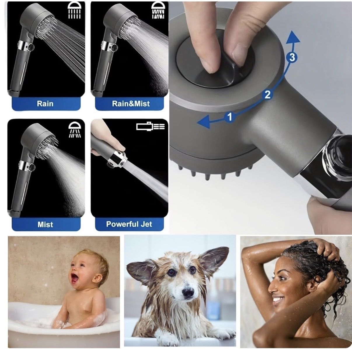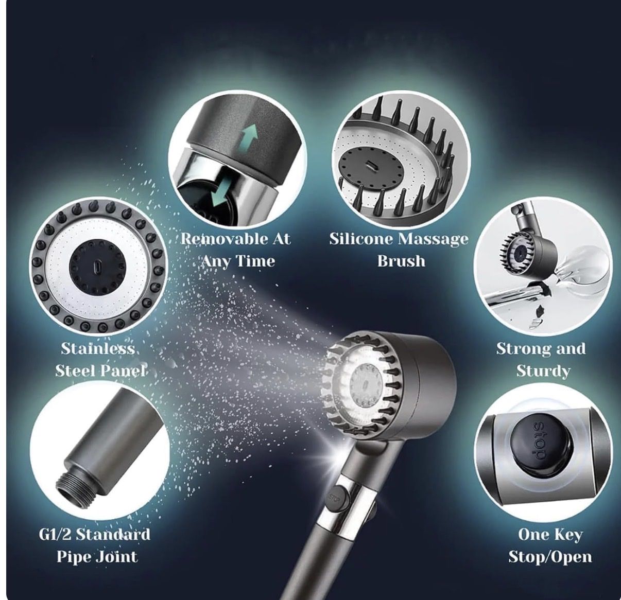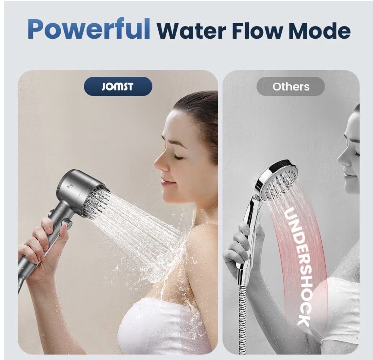 Ion Shower Drops Head Filtered Showerhead With Five Filters,Filtered Shower Head With Handheld,High Pressure Turbo Shower head Adjustable Settings With Hose