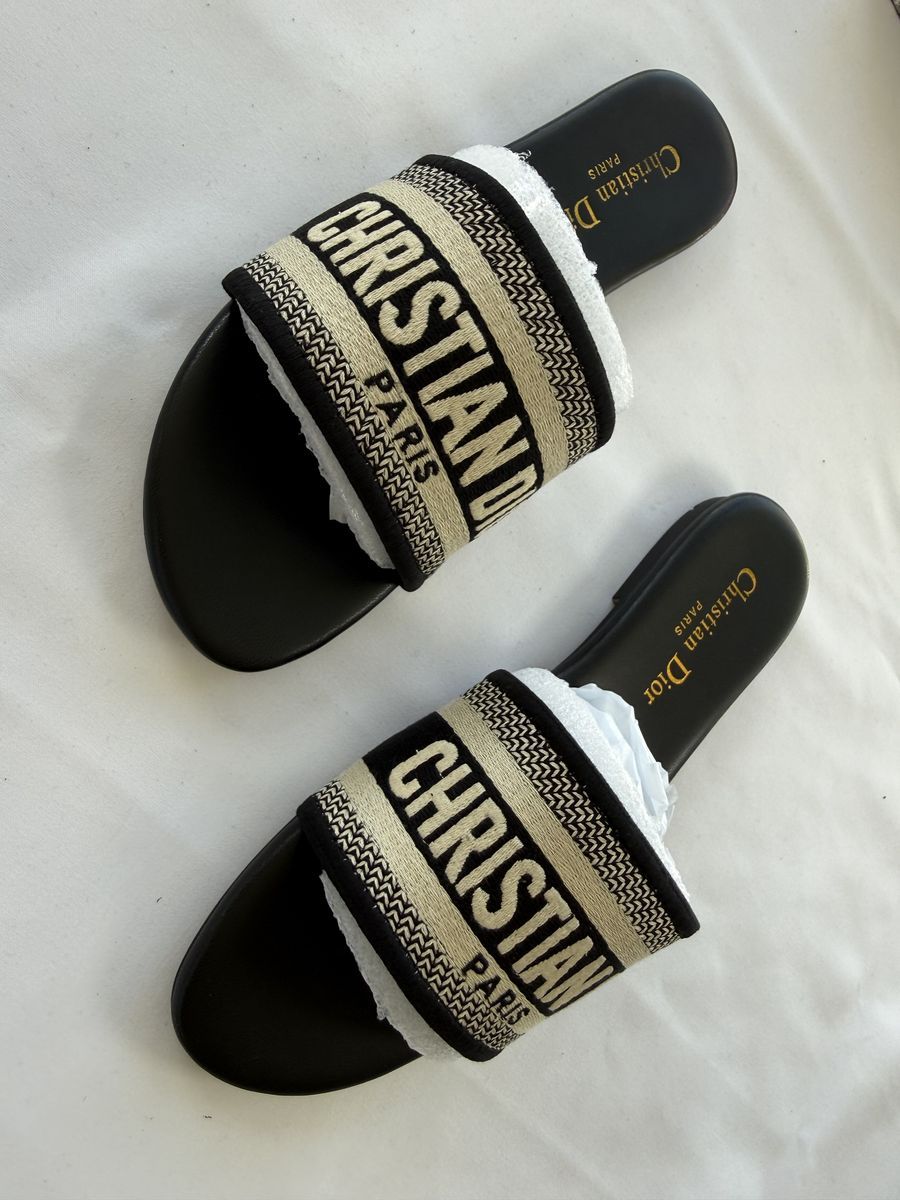 VenmoThe Dway slide has a timeless and emblematic silhouette. The slide's upper features a black embroidered Christian Dior Paris signature for an unmistakable touch. The streamlined design slips on easily and offers effortless style