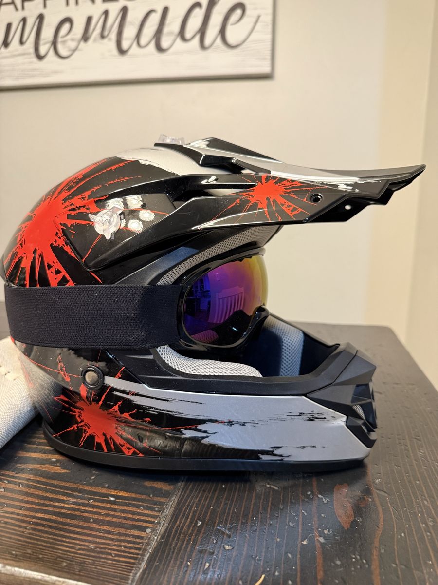 VenmoDirt bike helmet with googles. Brand new only worn a couple of times. No damage and in great condition Size 53-55 cm