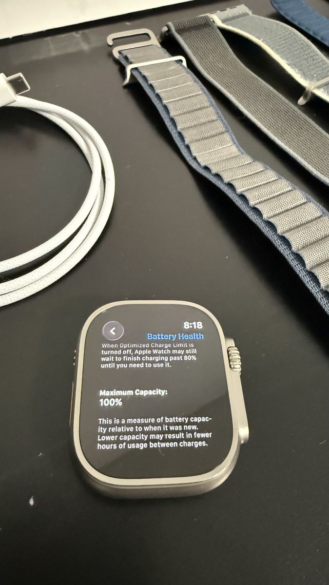 Adult owned, very clean, boxes, cables included, and 100% battery capacity. This was used very minimally for sleep tracking primarily. Screen is flawless with no scratches at all or any flaws.