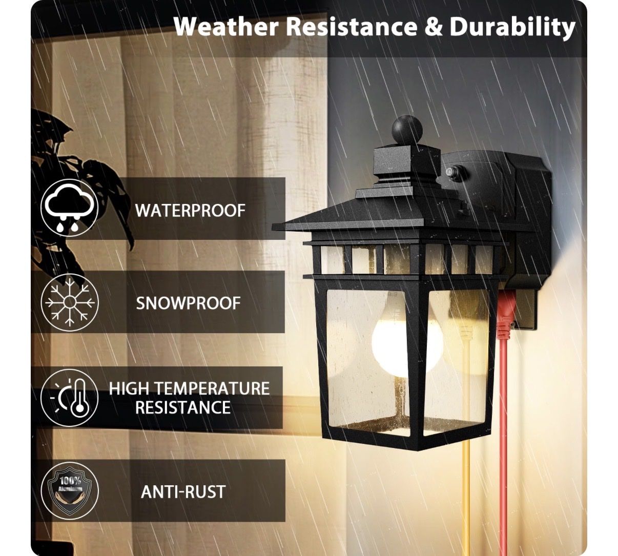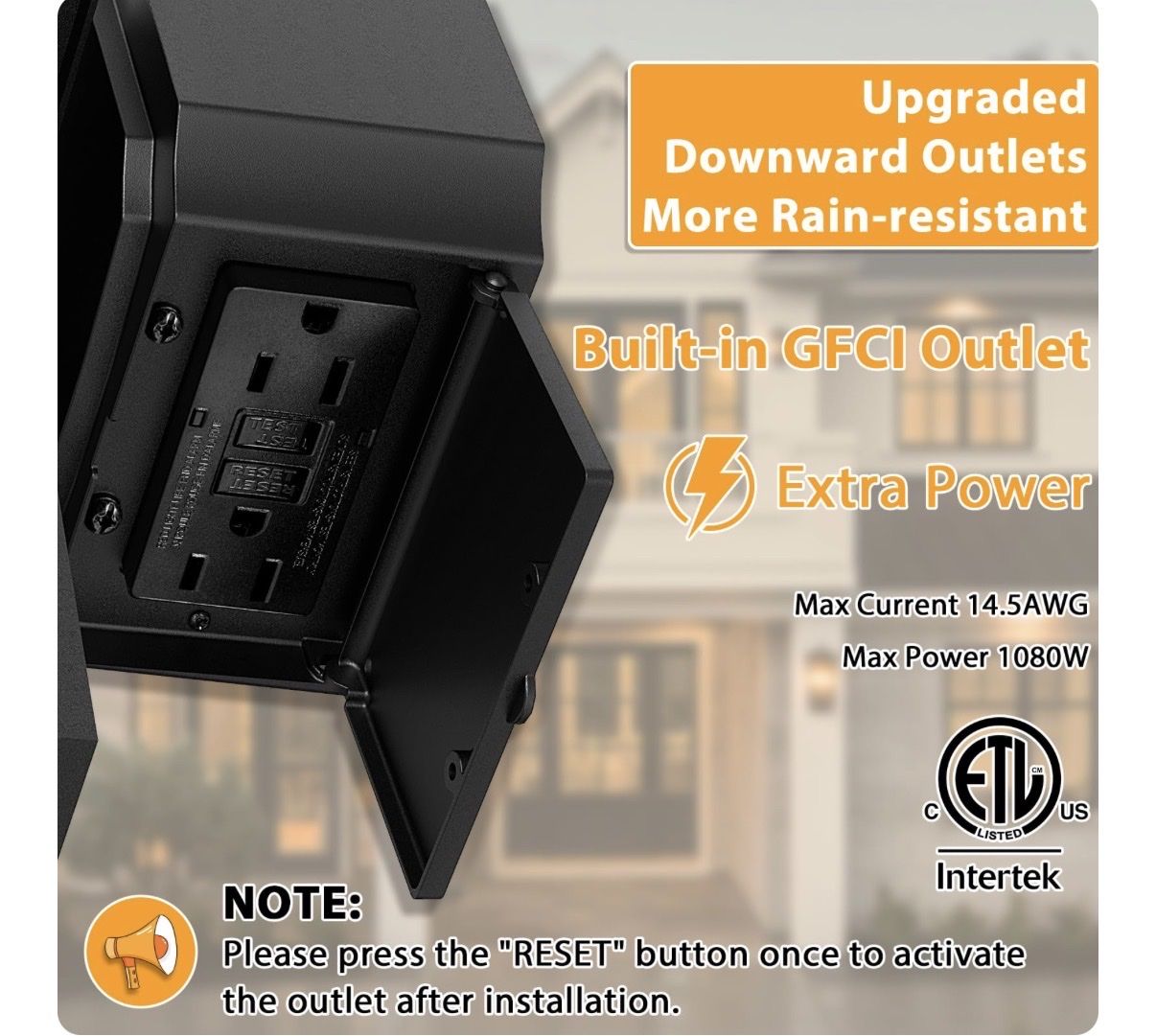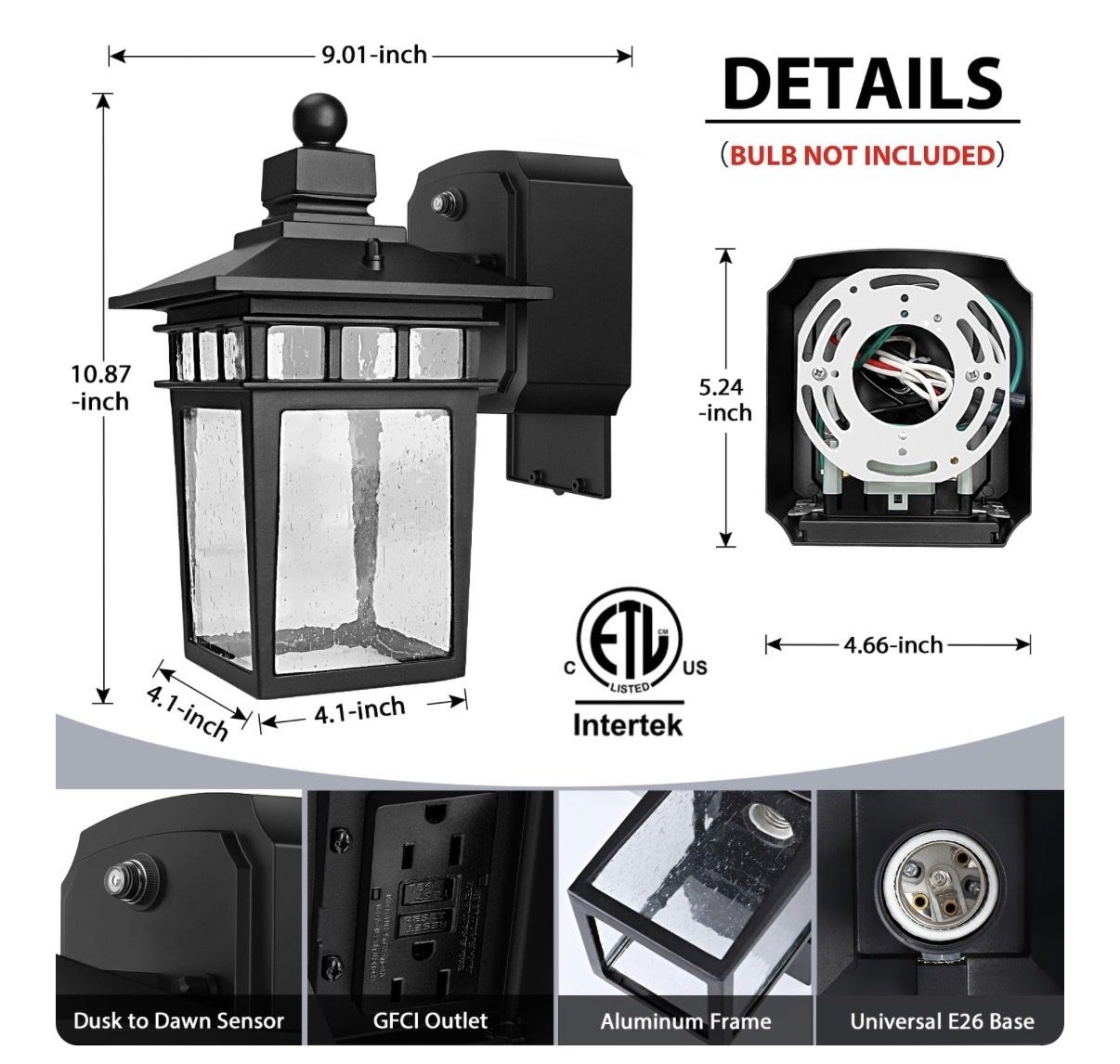 Dusk to Dawn Outdoor Lights with GFCI Outlet Sensor Outside Exterior Porch Wall Light Fixture, Anti-rust Wall Mount Lantern,Waterproof Wall Sconce,Outside Lights for House Front Door,Bulb not Included