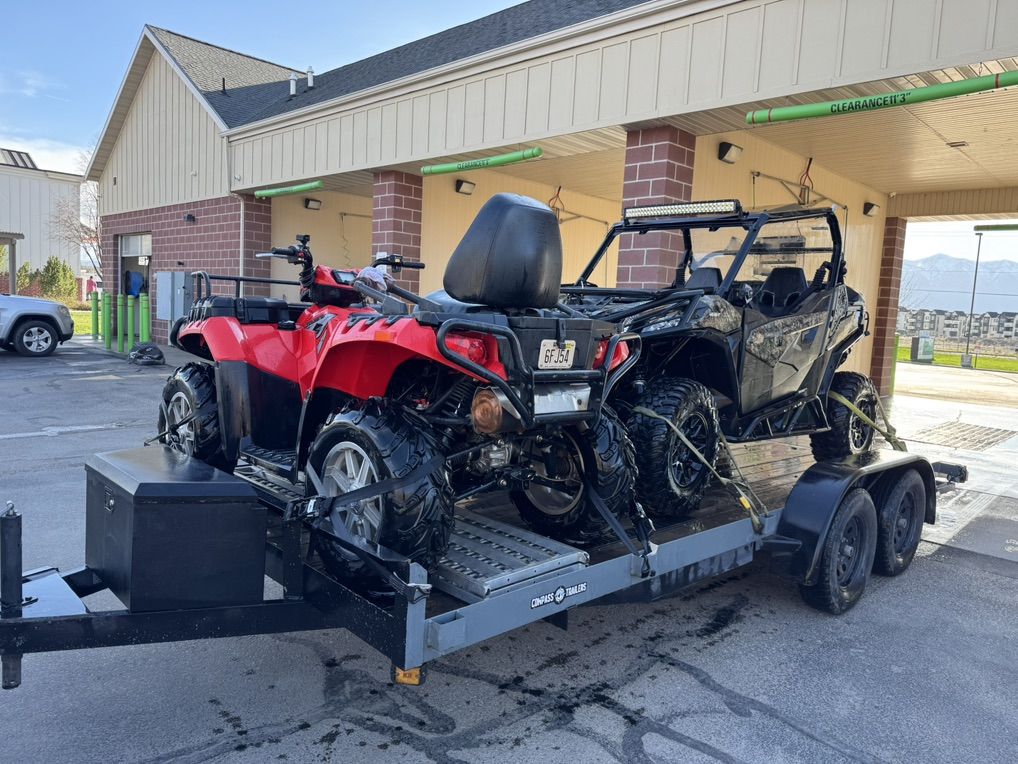 Selling this beautiful Polaris Sportsman 550. EFI and EPS. 4x4 on demand. 2-up. Very comfortable for 2 people. ONLY 2200 miles. It has a winch. New tires. Front and rear bumper. Front rack on top of Polaris compartment box. New battery Was serviced on February 2026. Polaris cover and the rear box that replaces the passenger seat when not using it. Package deal with the 5x8 trailer.