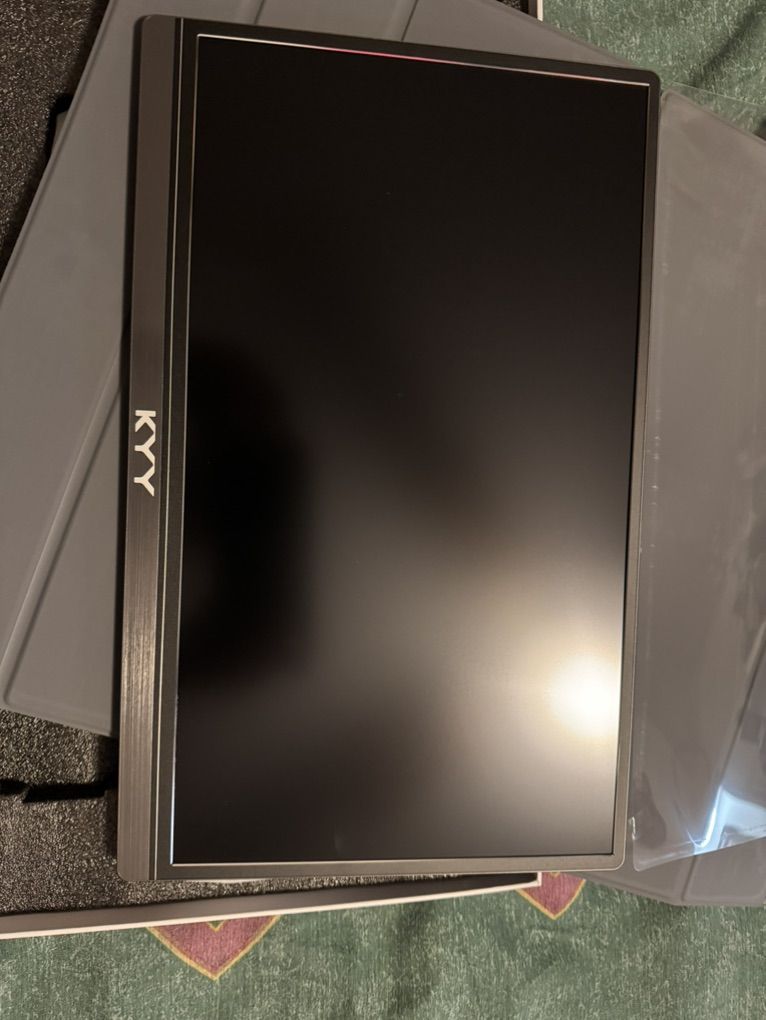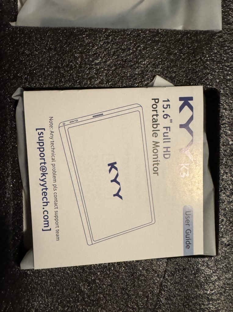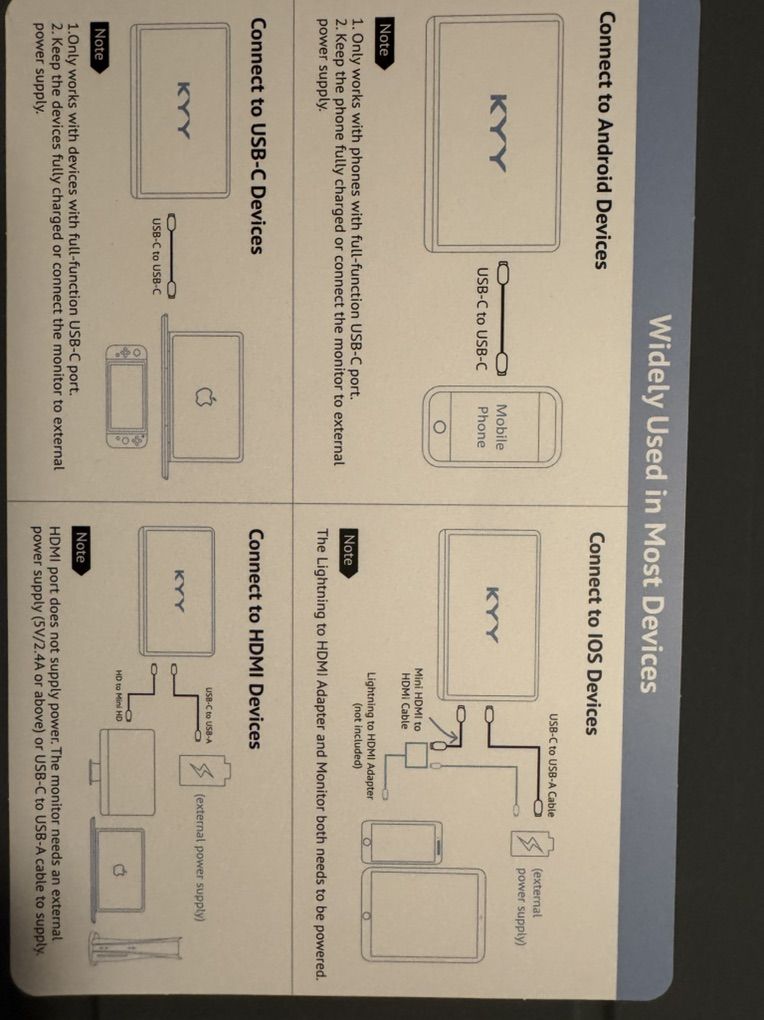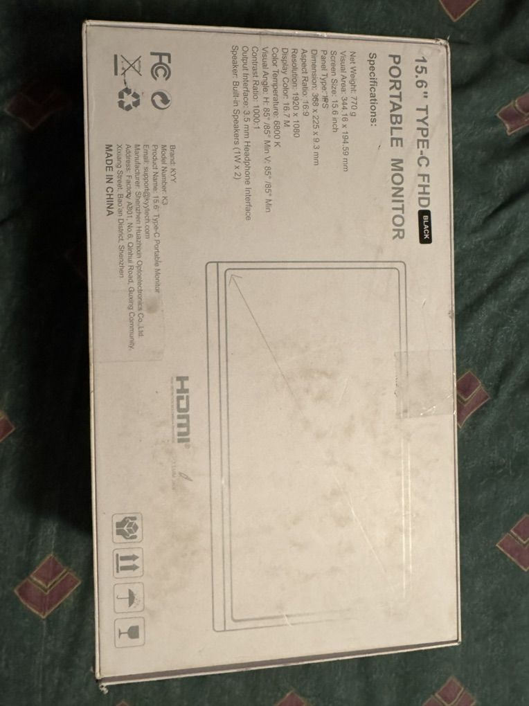 Brand new in the box. Comes with power adapter, HDMI to HDMI-Mini, and USB-C cords. Runs off power from the device over USB-C. Much brighter when powered with the adapter.