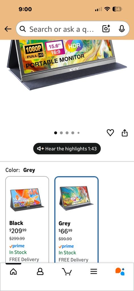 PayPalKYY Portable Monitor 15.6inch 1080P FHD USB-C, HDMI Computer Display HDR IPS Gaming Monitor w/Premium Smart Cover & Screen Protector, Speakers, for Laptop PC MAC Phone PS4 Xbox Switch