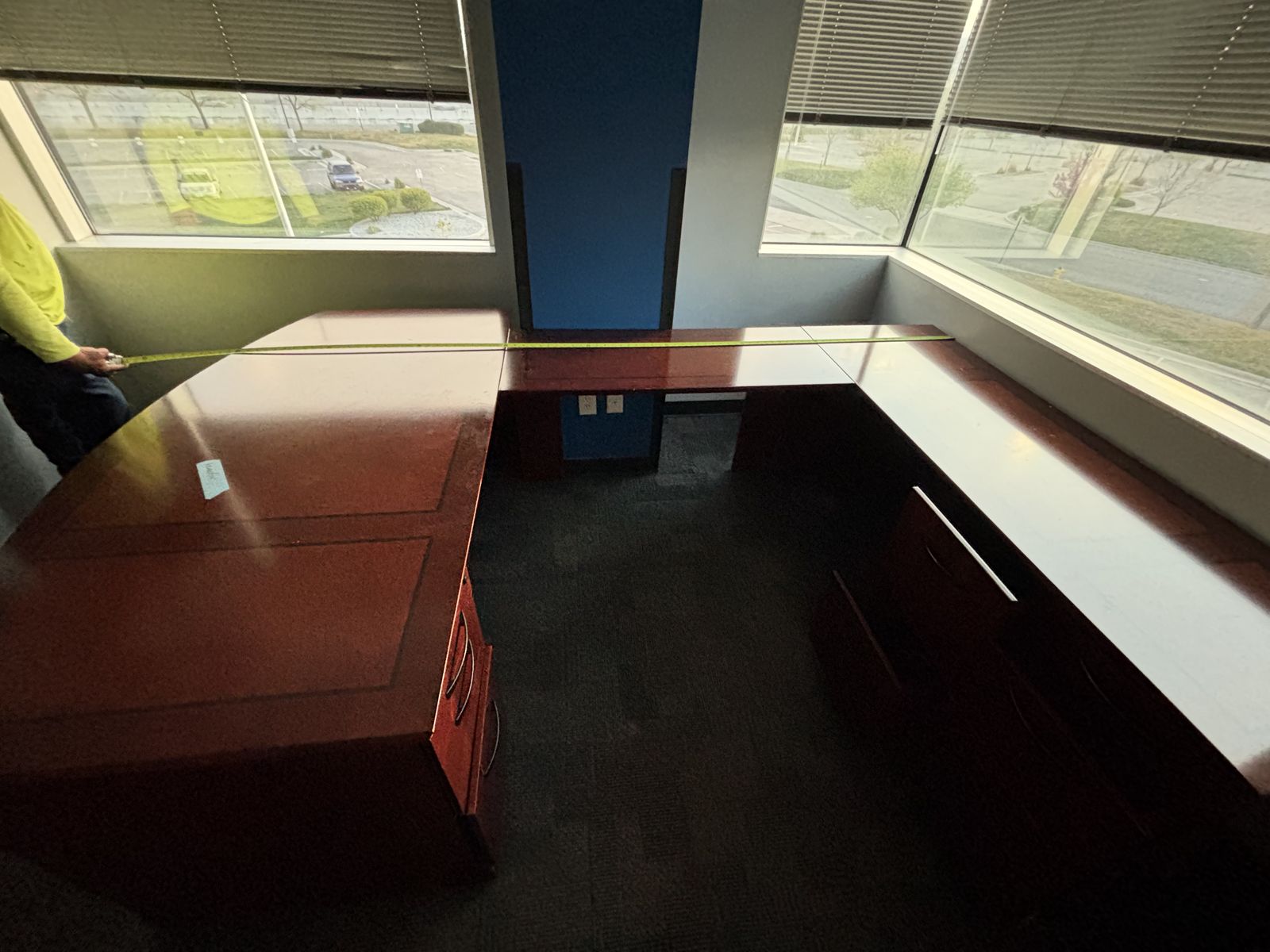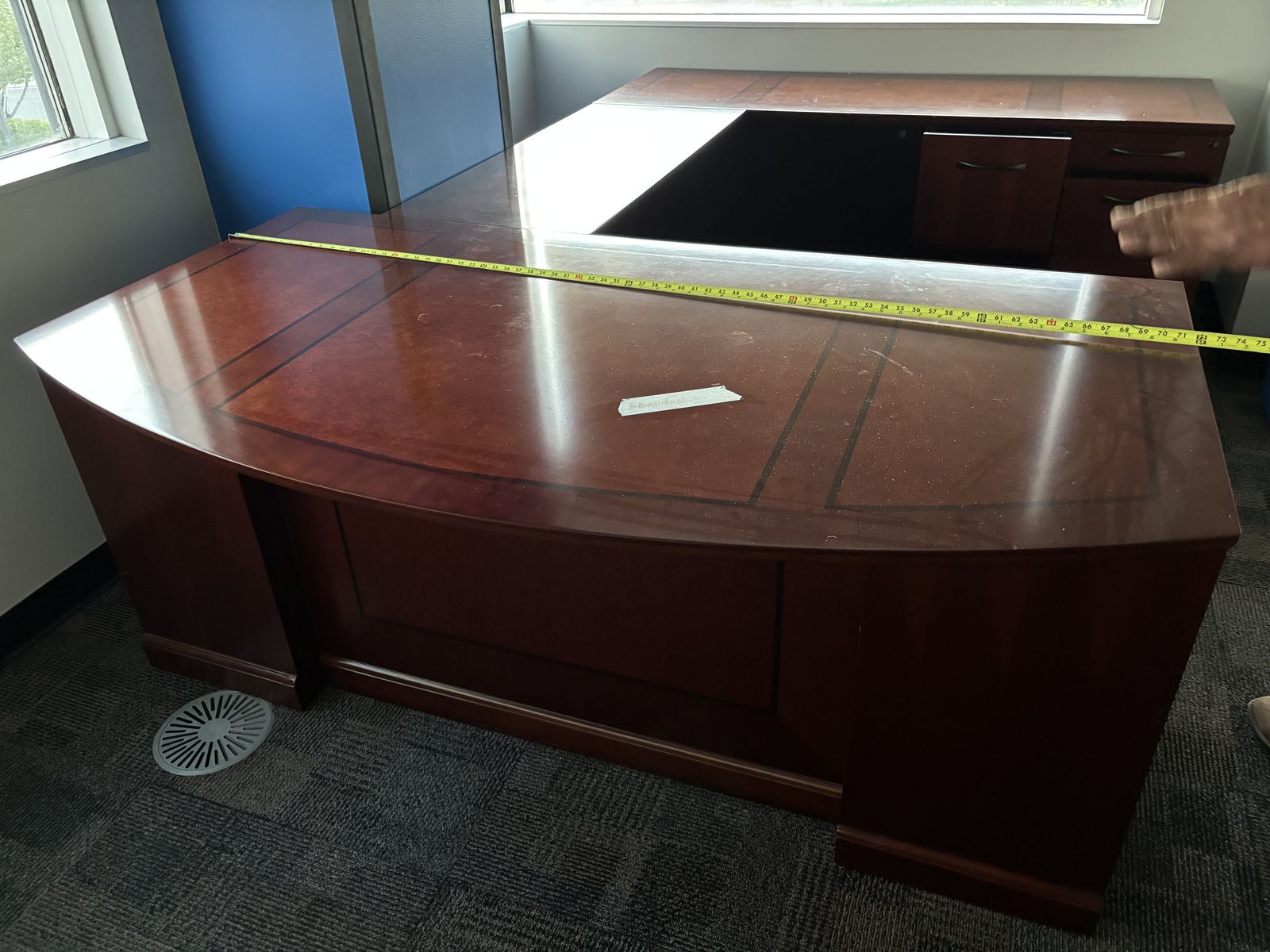 VenmoU Shaped Executive Office Desk Set in the color cherry bourbon. Great condition. Sells for over $4,000 asking price is $450 or best offer. Pickup is needed, message me for any questions :)