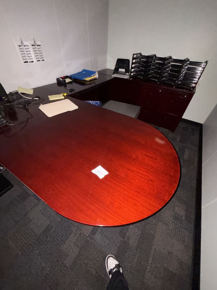 ApplePayThis is a mahogany laminate executive U-shape desk with cabinets. 6" x 9" Sold for over $1,000 but asking price is $300 or best offer. Pickup is needed, send any message for questions :)