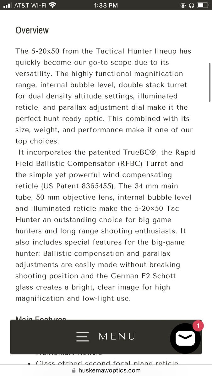 Huskemaw is known for its partnership with Beat of the West Custom rifles and their reliable long range systems and patented windage hold reticles. These new tactical models are the upgraded versions of the original Blue Diamond and have extremely clear glass. The tactical also has a built-in level in the reticle so there’s no need for an aftermarket top ring mount with a bubble level and no need to come off the scope to check level and lose sight picture in a hunting situation. The tactical has a 34mm diameter tube and larger turret allowing for more turret travel. Also can have an illuminated reticle for low light situations.