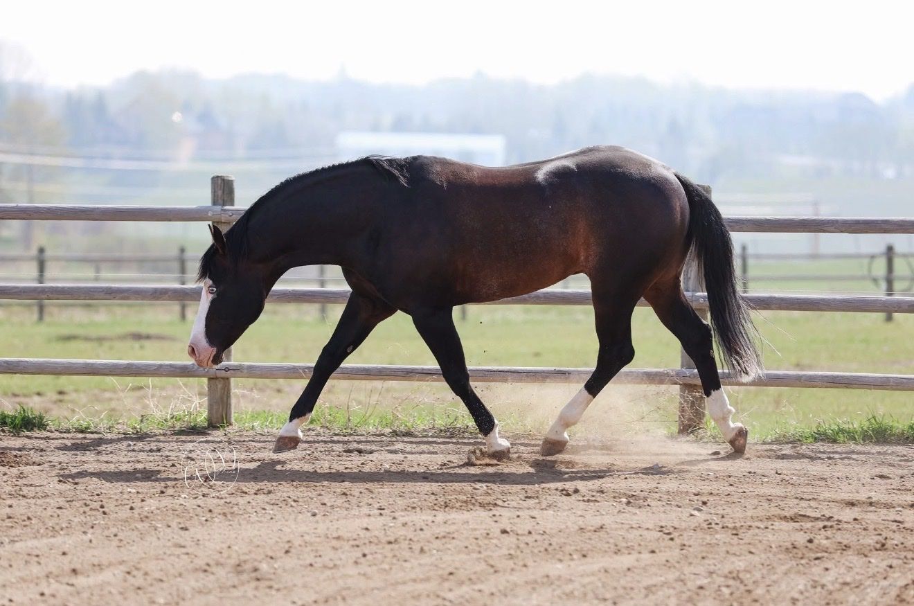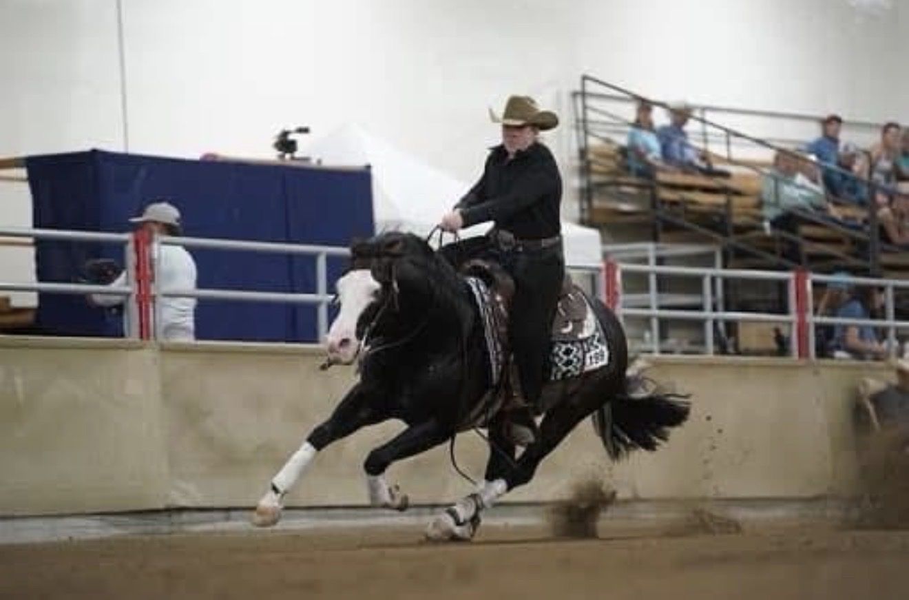 ZelleBy NRHA $5 Million Sire Spooks Gotta Gun— one of the most dominant and proven producers in the history of reining and Dam Lucky Little Latte. Spooks Big Bang has a LTE: $52,000+. This bloodline consistently delivers elite-level athletes with exceptional stop, turn, and trainability. Breed your mare to proven performance genetics that WIN in the show pen. One of the few stallions in history to win ALL major reining events. Last few pictures are his offspring. 5 Panel N/N Color Testing Results: n/SW1 n/SW2 Ee Aa OWLS/Neg