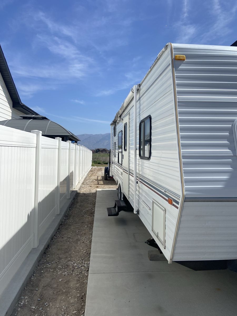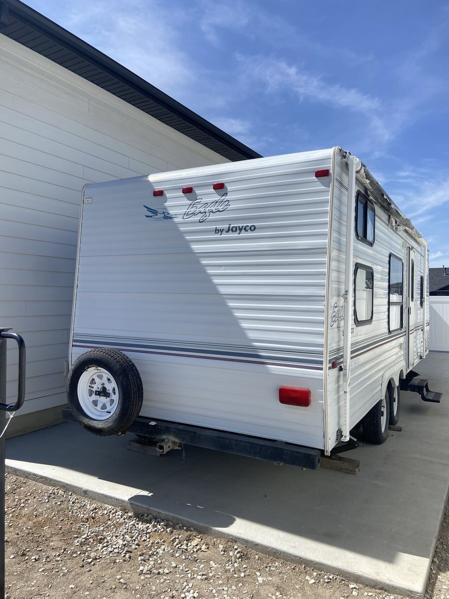 This is a nice condition Jayco trailer. It is 28 feet per specs (believe box is 26) and weight is listed at 4810. Nice and easy pull for many vehicles!
