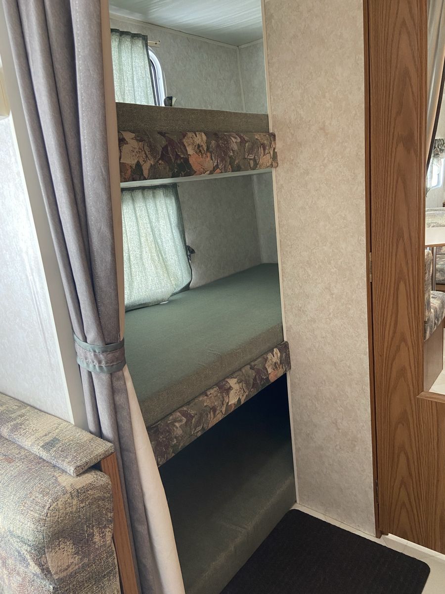 It has a queen in the bedroom, a couch that will turn into a bed, a dining table that goes into a bed, and a coveted triple bunk.