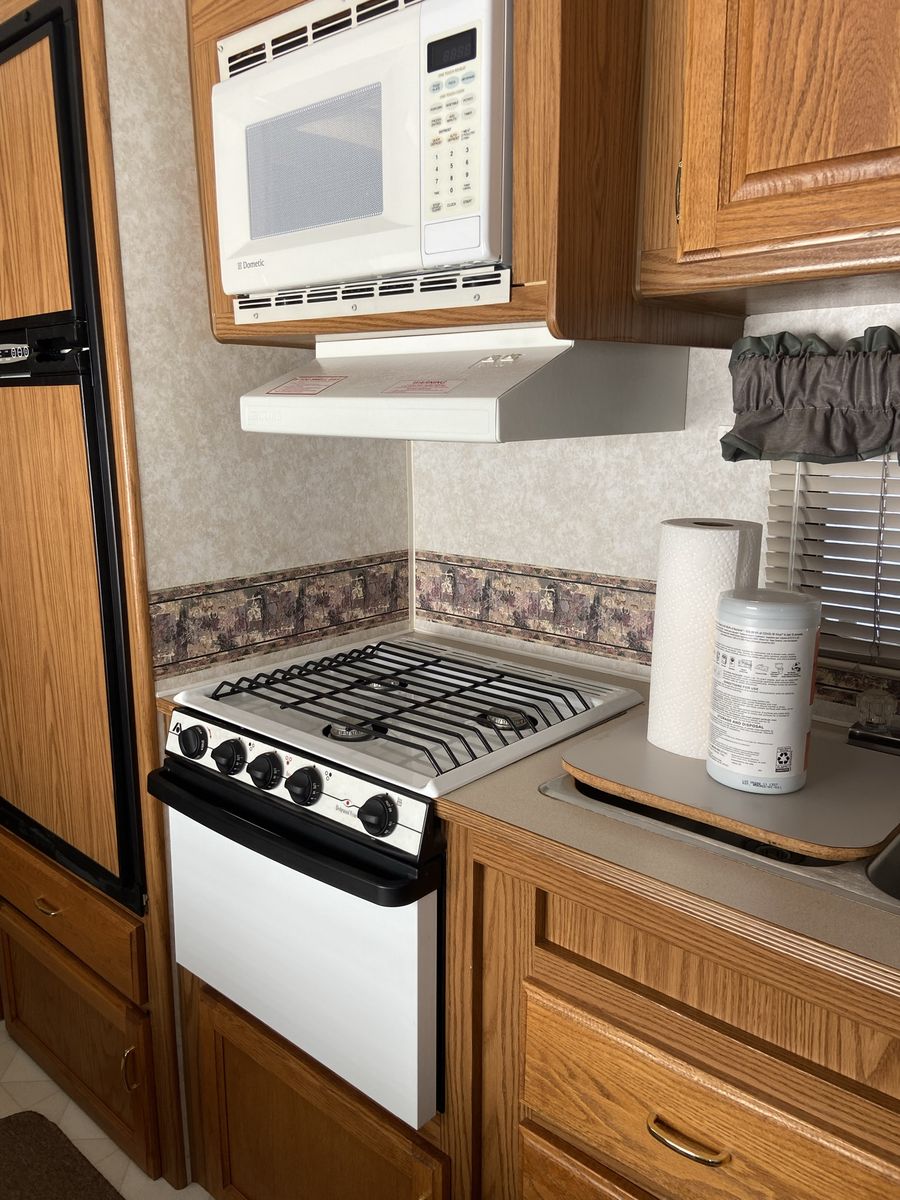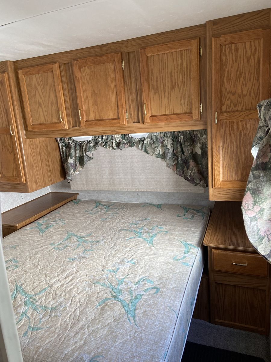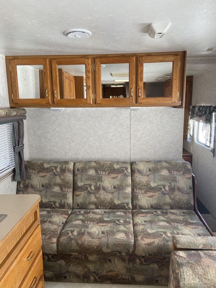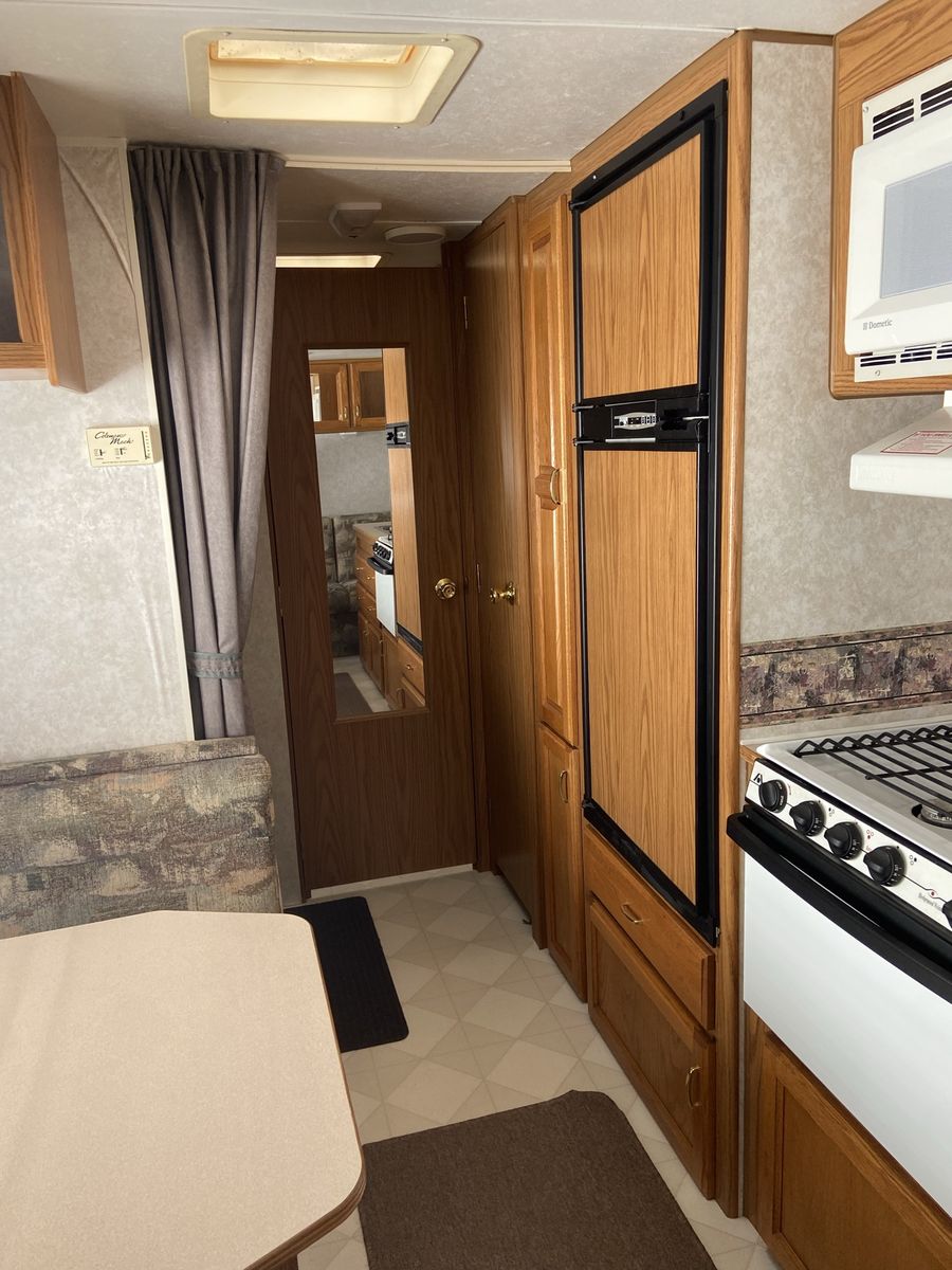When we got the trailer it had some water damage. No structural issues but you can tell on parts of the wallpaper. The prior owner had new rubber matting on the roof and then it sealed. We haven’t had issues since. We took the roof down to the rubber last year, primed (rv primer is thick like pine gum), and sealed. Ran rv tape and caulk along the seams as well. The awning wasn’t ever used due to the awning so it sort of just dry rotted away.