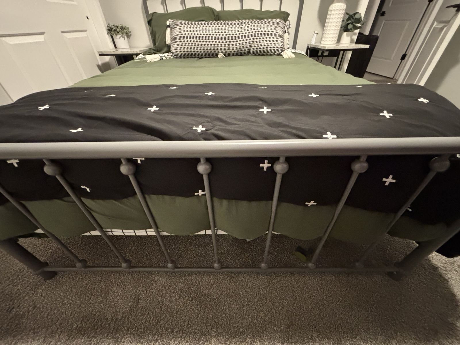 ApplePayGray Kelly Clarksom Home Maddie Metal Spindle Bed frame purchased from Wayfair, originally $300. Located in our spare bedroom and has been very lightly used, so it’s in excellent condition.