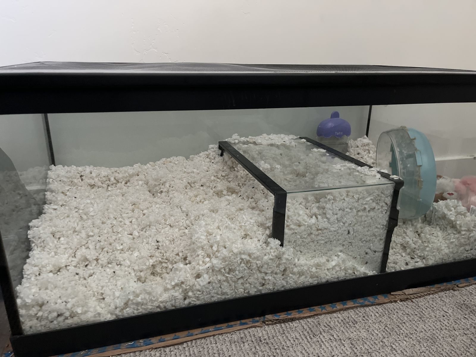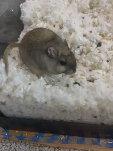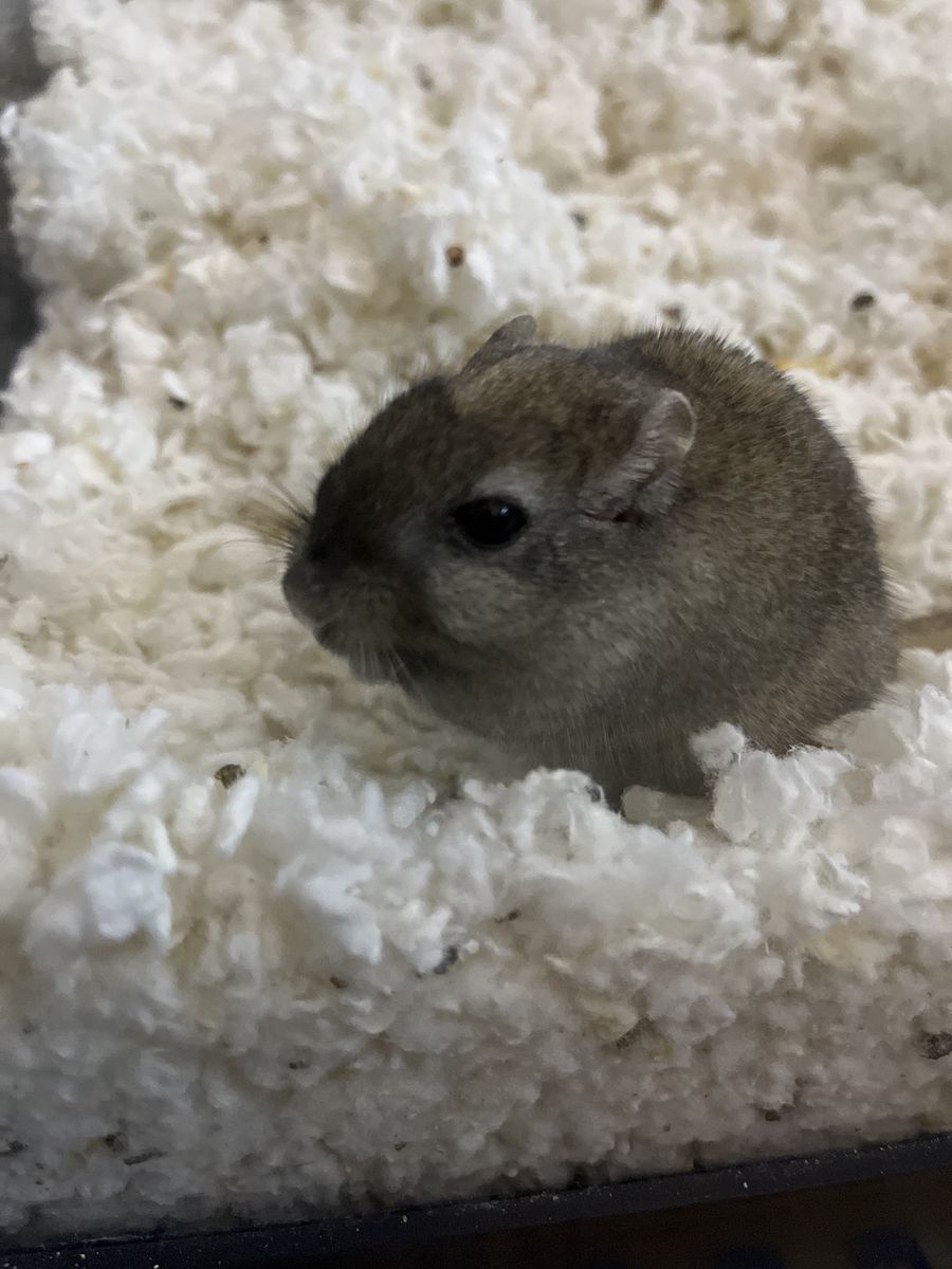A 1 year old gerbil for sale. Her name is Cocoa and she is completely healthy. This comes with a wheel, aquarium, little tank, water bottle and dust dish. If you want there is some left over dust.