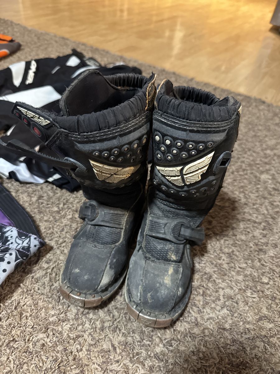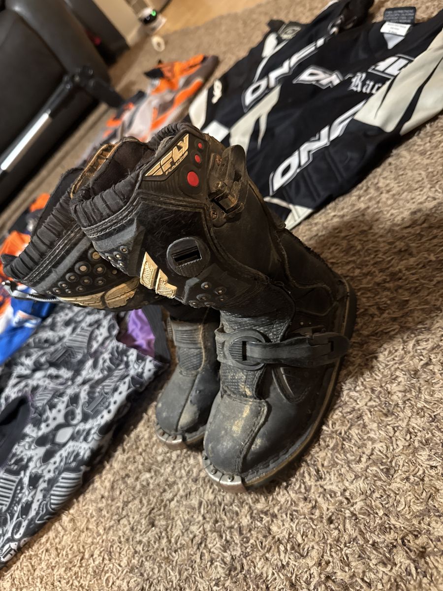 Fly racing size 12 kids boots. One broken buckle. Still work great. $20.