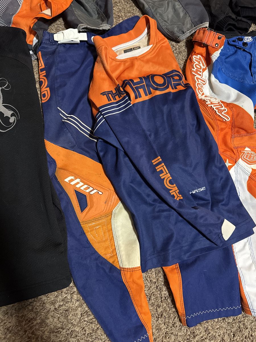 Thor pants and jersey set, orange and blue, size medium Jersey, size 22 youth pants, $45.
