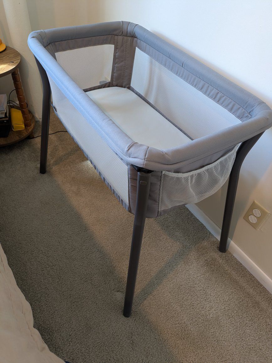 VenmoChicco LullaGo Anywhere Portable Bassinet in great condition. Comes with original mattress cover and travel bag as well as two additional fitted sheets. Dimensions - 18 in. W X 30 in. L X 28 in. H. Purchased new in 2023 and used with two babies. Youngest recently outgrew it. Text is the best way to reach me