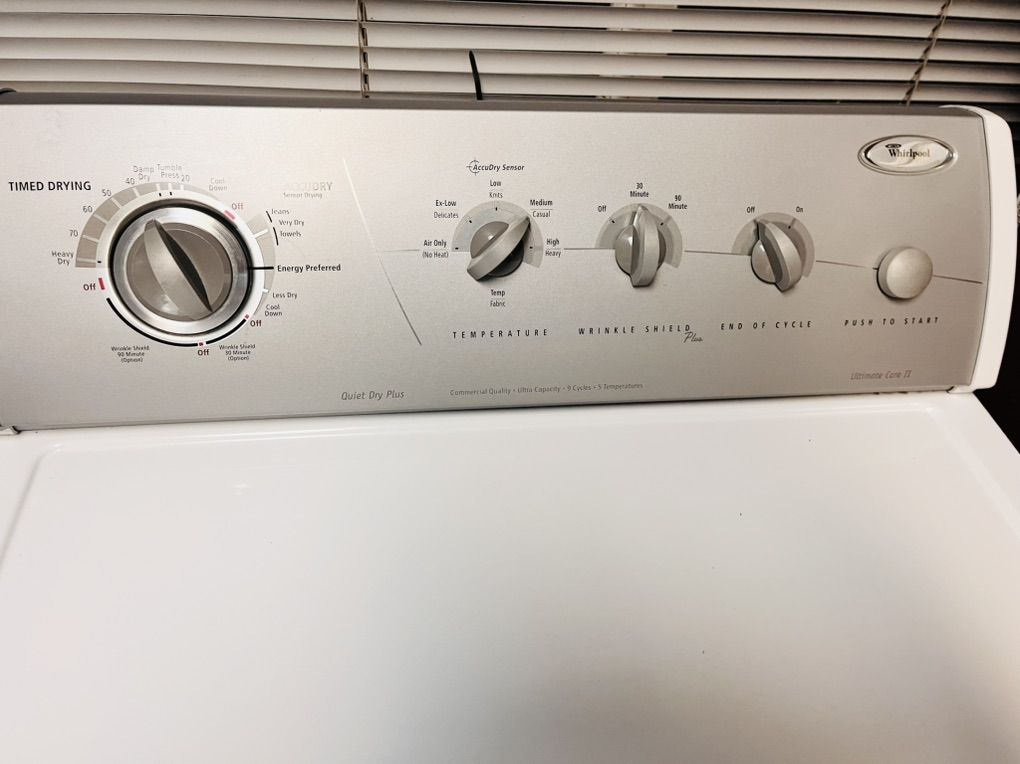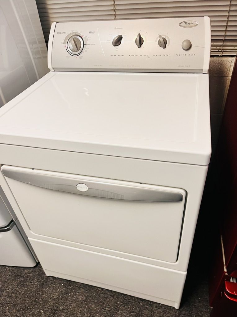 Very heavy duty whirlpool ultimate care 2 series electric dryer in excellent condition and very clean, it has nothing fancy or digital but it has plenty options and temperatures to get the job done. This style machines will go for years and handle pretty much anything size load you can fit in it. Only $180 I can deliver and install for a little extra call 8015403075