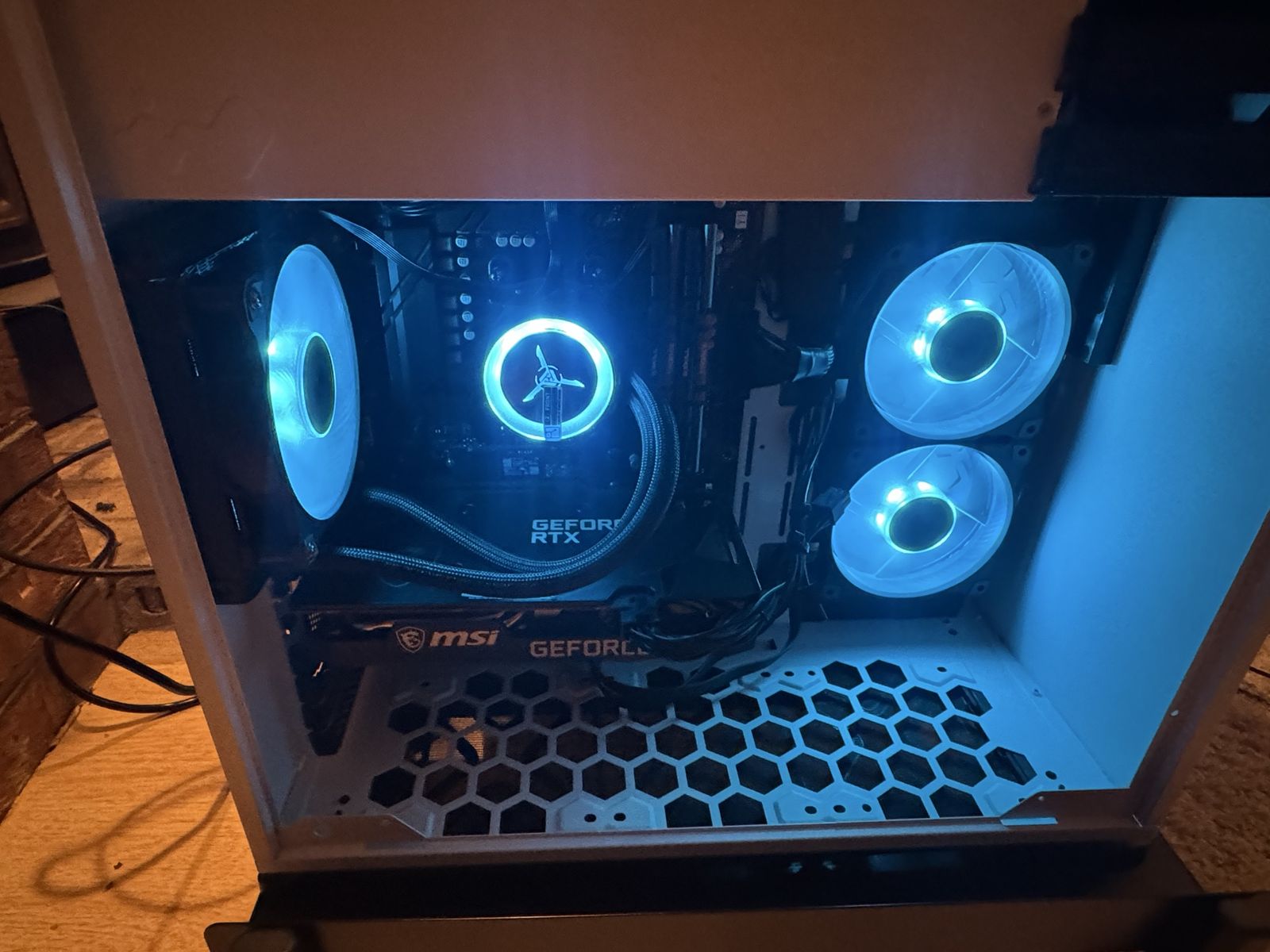 ApplePayLiquid-Cooled Gaming PC - Ryzen 5 5600X | RTX 3060 Ti | 32GB RAM | 1TB+ SSD Description Prebuilt PC that is excellent for 1080p gaming. This PC has been maintained, and runs exceptionally cool and quiet thanks to the premium liquid cooling. Verified 2026 Performance (See Benchmarks in Photos): • Cinebench 2026 (Multi-Thread): 2,639 pts. • Cinebench 2026 (Single-Thread): 481 pts. • 3DMark Time Spy: 10,623. The Specs: • GPU: NVIDIA GeForce RTX 3060 Ti 8GB • CPU: AMD Ryzen 5 5600X (6 Cores / 12 Threads @ 4.6GHz Boost). • Cooling: AIO Liquid CPU Cooler • RAM: 32GB DDR4-3200MHz (X4 8gb RAM). • Storage: 1TB NVMe SSD + Additional Secondary SSD for game storage. • OS: Windows 11 Home Condition & Security: System is in excellent condition. Maybe some minor cosmetic flaws. Everything is 100% functional. I will keep my data on it until you purchase so I will perform a secure factory reset when I receive payment. I can meet in public setting. For peace of mind, I can be in communication to send videos of PC in use, to show it's functional. Price: $650 Payment: Cash or Venmo. Serious inquiries only. No trades.