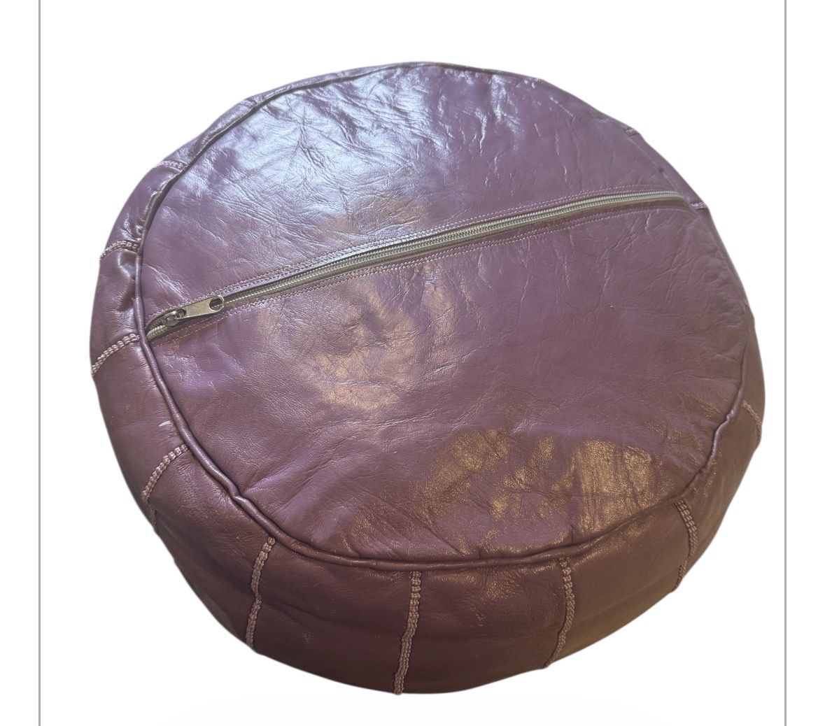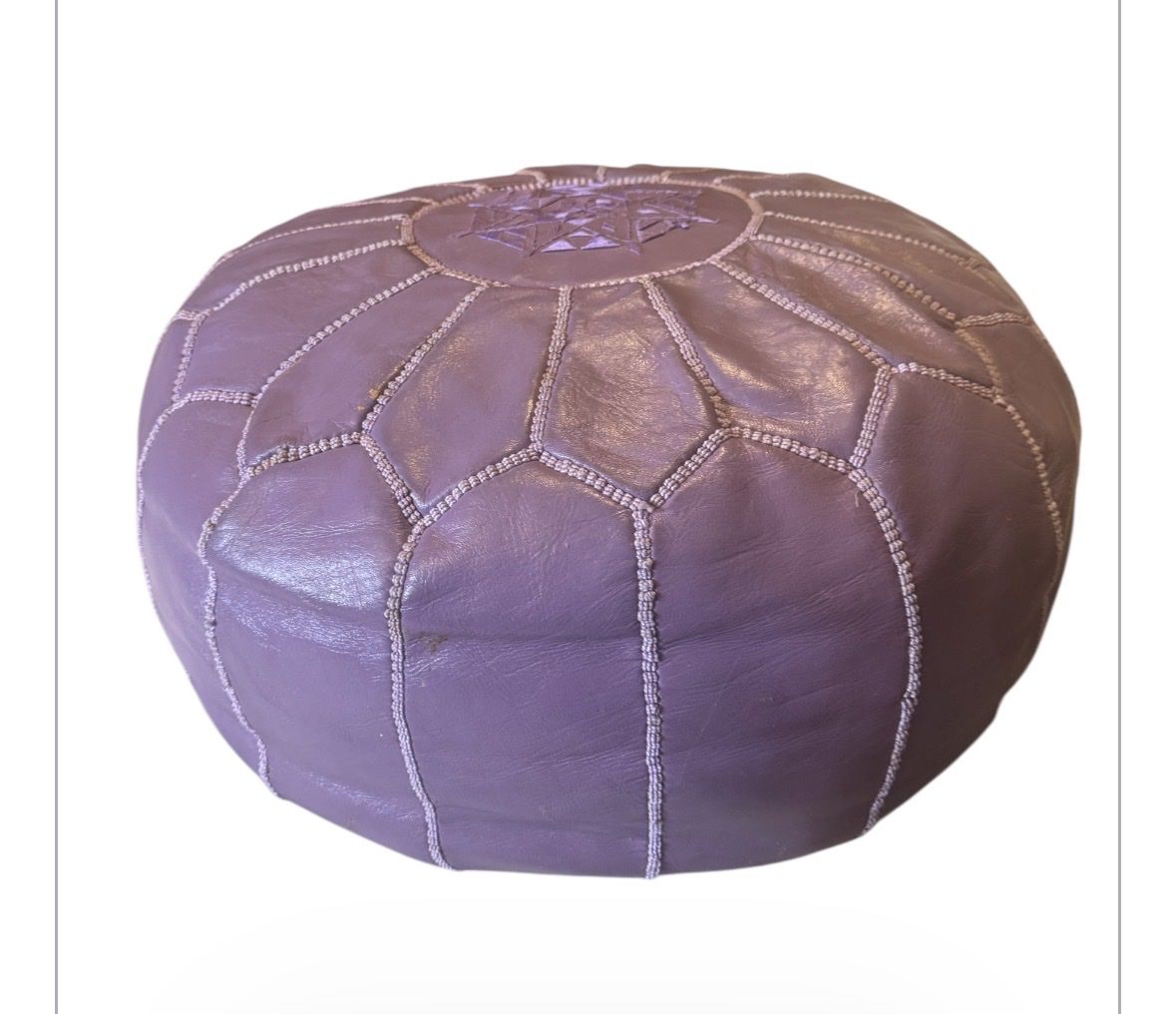 VenmoInfuse a little decadence into your space with this quaint and sumptuous ottoman. The supreme, luxurious leather is hand stitched by artisans for a lovely, homespun feel you can enjoy for years to come. Features: • Handcrafted Moroccan leather pouf • Made of premium grade leather • Hand embroidered with silk • Zipper bottom for easy access to fill • Purple color
