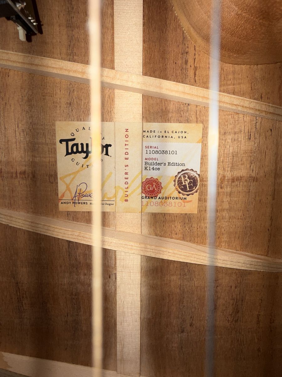 VenmoFrom Taylor - Crafted to deliver an ultra-refined playing experience with tone and comfort to match, the Builder's Edition K14ce is a Grand Auditorium acoustic-electric guitar designed to the exacting preferences of our master guitar designer, Andy Powers. Back and sides of solid, beautifully grained Hawaiian koa produce warm lows and crisp, clear treble notes, with the specially roasted spruce top adding a bit of aged sweetness. Builder's Edition special features include a beveled armrest and cutaway, chamfered body and fretboard edges, and our Silent Satin finish, with an artful Spring Vine inlay that tops off the visual details. The Builder's Edition K14ce ships with ES2 electronics and a deluxe hardshell case. 2011 model.
