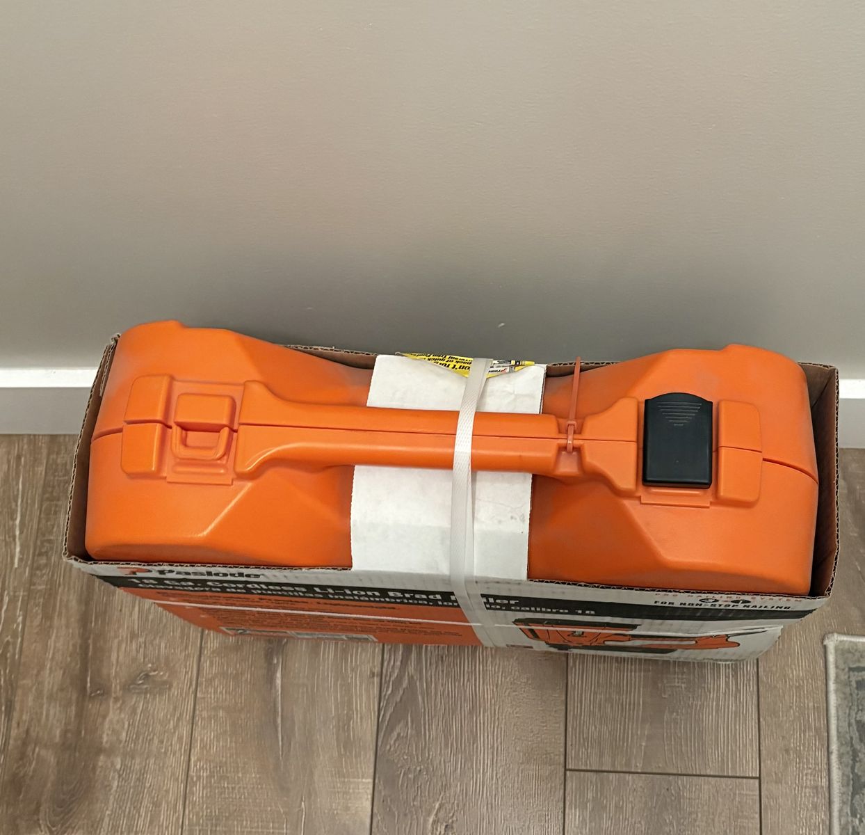 Tool kit includes: 18 Ga cordless Li-ion brad nailer, rechargeable lithium-ion battery, lithium-ion battery charger, rugged carrying case, ownerβs manual, and safety glasses