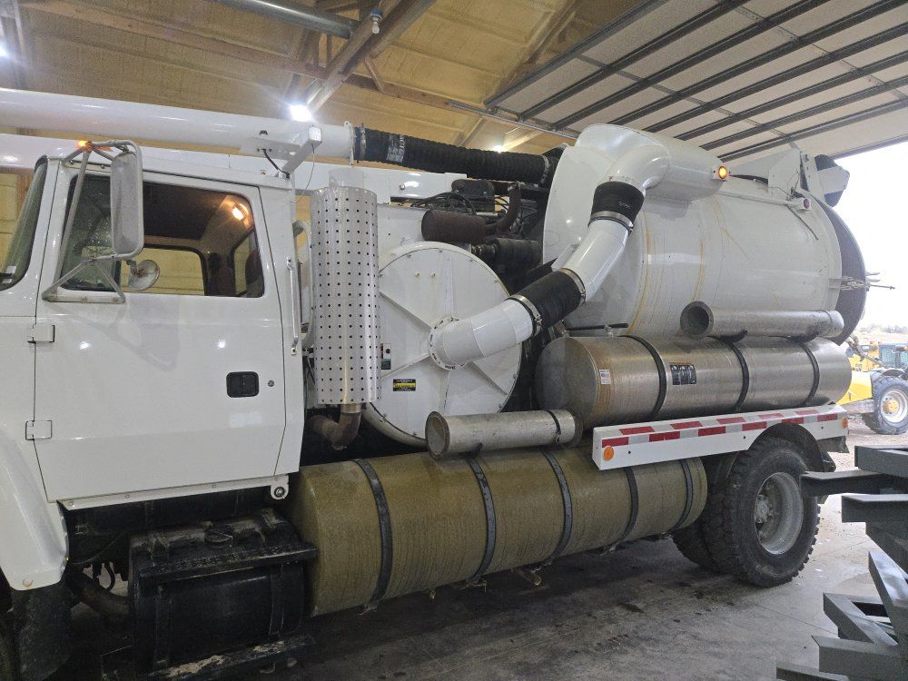 1992 vactor vac truck , super clean truck no rust , no big oil leaks starts right up drives real nice ,it has a inline 6 cylinder ford motor its prety much a Cummins they vac motor is a 4 cylinder Cummins reman motor starts right up no blow by either engine , vac sucks really hard , everything for they most part works they Jeter pump is leaking they seals are blowin on one end if I was keeping it I would simply install a hydrolic driven power washer pump for they wand to replace they Jeter pump. I did just notice when we pulled it into they shop the fuel primer is dripping disel fuel simple fix it only had 56 k miles on it and was completly refurbished some years back tires are extent shape as well
