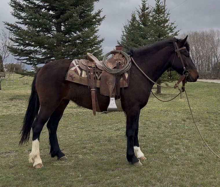 Lila is a 7 year old 15.1H big boned mustang mare. She is from the red rock lakes HMA. She is titled, I have the paperwork. I picked her up from the Boise corrals in February of 2024. She was easy to break out and handle. Last time she was rode was last summer, she had all winter off due to my lack of time. Put her back to work this spring she never gave us any problems, she stayed broke. she has a 30 day tune up and is ready for somebody to start putting some miles on her. She had been rode mostly in the indoor arena this spring but she was rode allot outside in a ranch setting last summer. Shes super sweet and going to make an amazing trail partner. She stands for the farrier, good to work around, and loads.