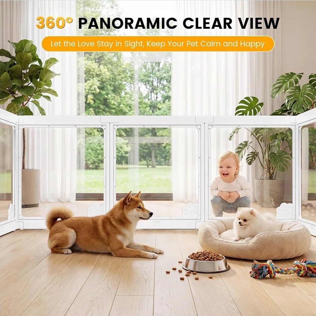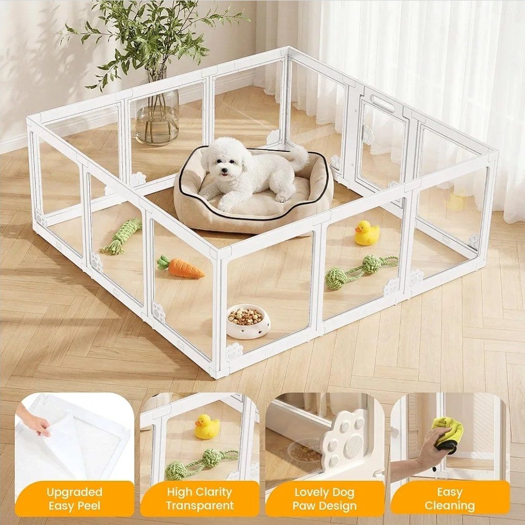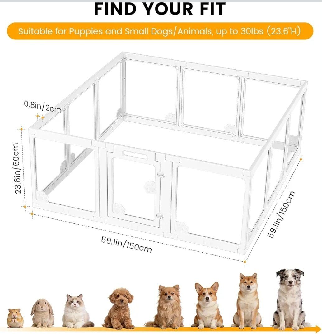 Clear Acrylic Plastic Dog Playpen - Clear Dog Play Pen - Easy Assemble Acrylic Dog Playpen - Puppy Playpen, Cat Playpen, Small Animal Playpen, Dog Play Pen Indoors (White, 23.6" H, 12PCS)