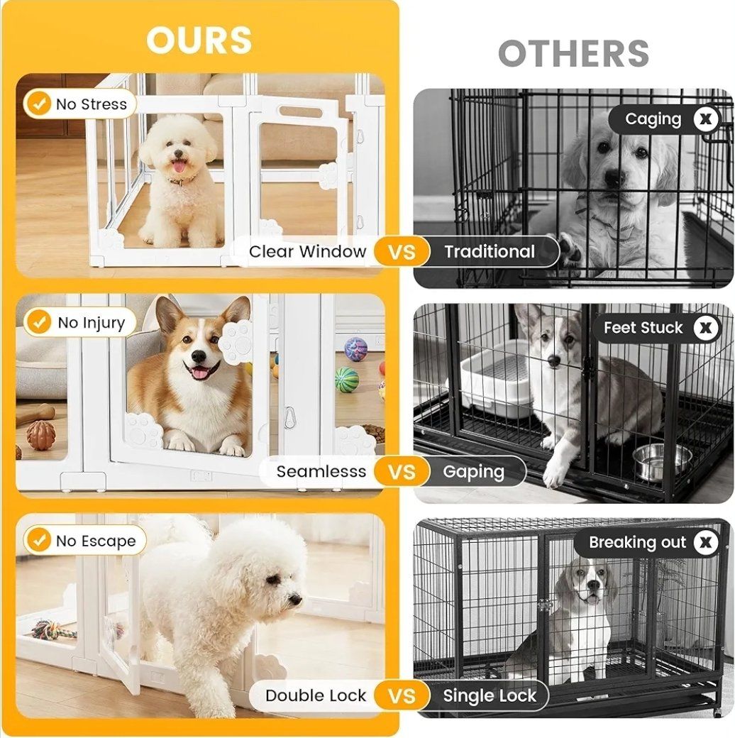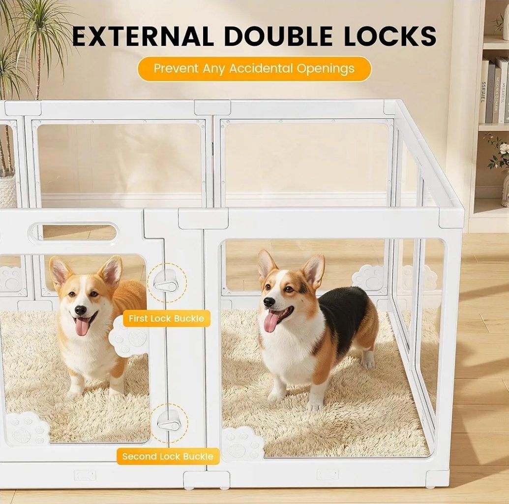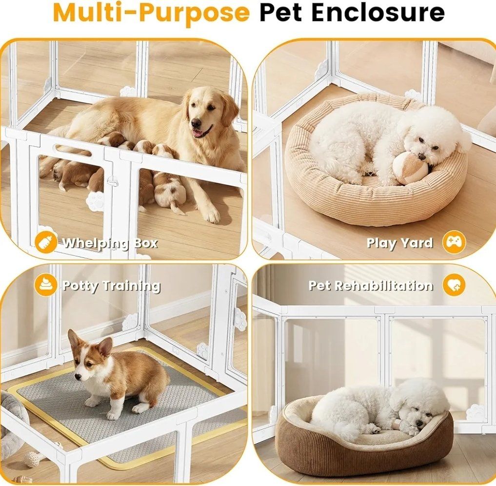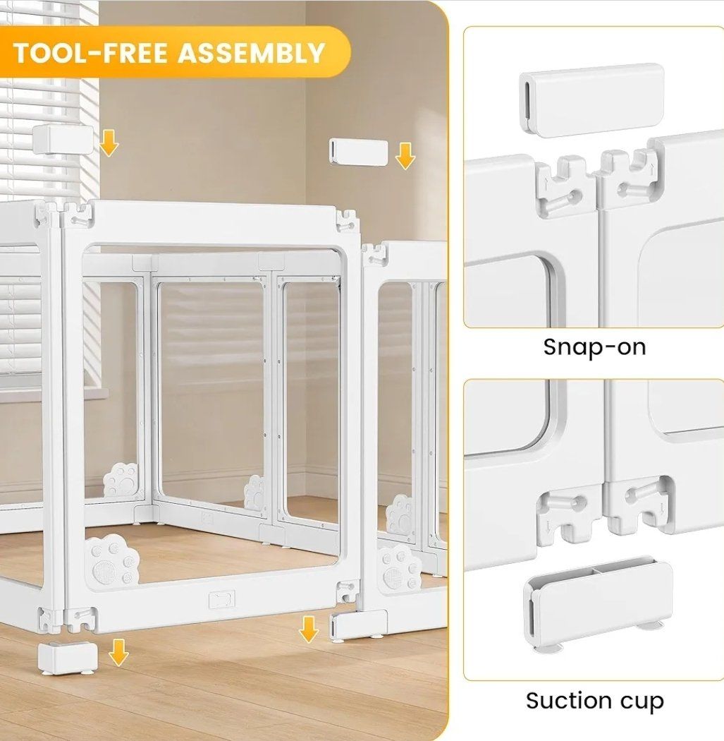 Clear Acrylic Plastic Dog Playpen - Clear Dog Play Pen - Easy Assemble Acrylic Dog Playpen - Puppy Playpen, Cat Playpen, Small Animal Playpen, Dog Play Pen Indoors (White, 23.6" H, 12PCS)
