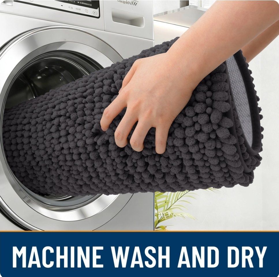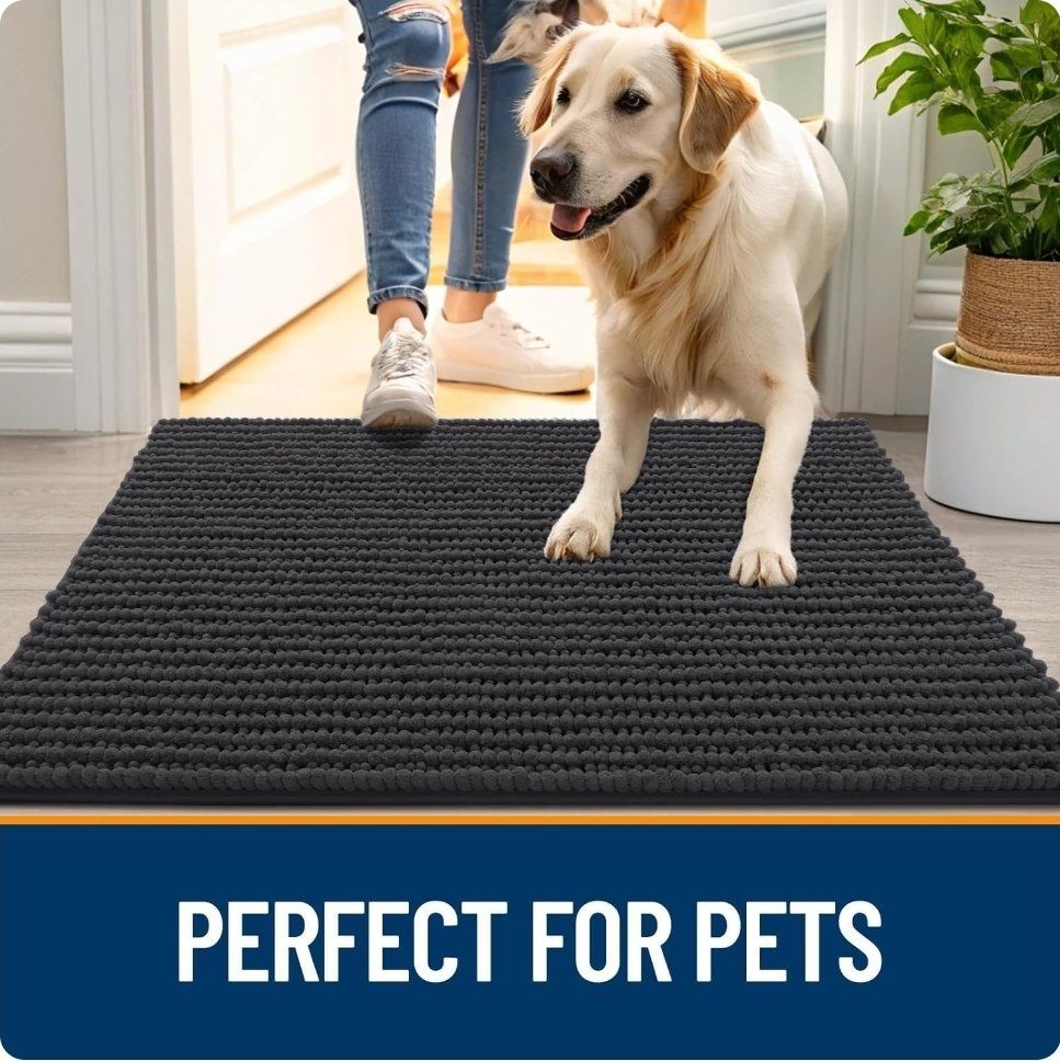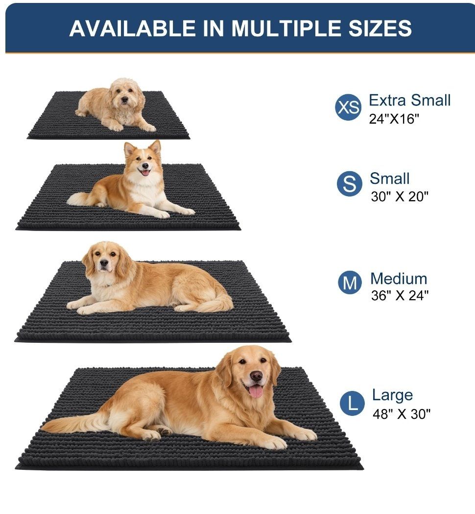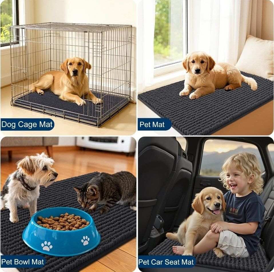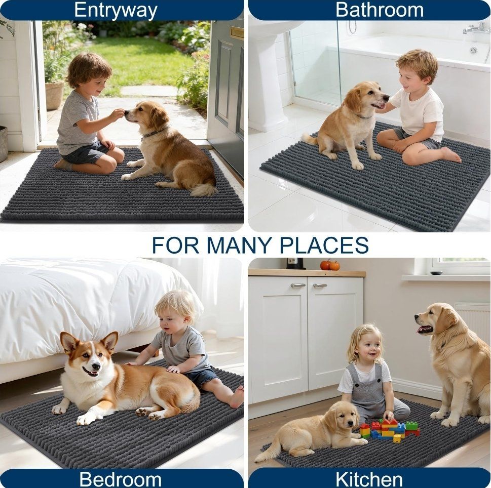 OLANLY Dog Door Mat for Muddy Paws 59x35, Ultra Absorbent Chenille Mud Doormat, Non-Slip Washable and Dirt Trapping Doormat for Indoor Entryway, Quick-Dry Indoor Pet Bed Mats for Dogs, Dark Grey