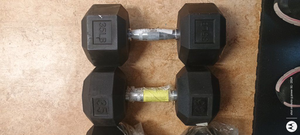 Durable rubber hex dumbbells for your home gym. Has a pair of 35lb weights and a pair of 40lb weights. One 40lb dumbbell is still in its original plastic wrapping. Handles are knurled for good grip. Great for strength training. New and very lightly used. $175 cash firm for both pairs Pickup in Ogden either at the North end of town by 5 points or South end of town by wsu.