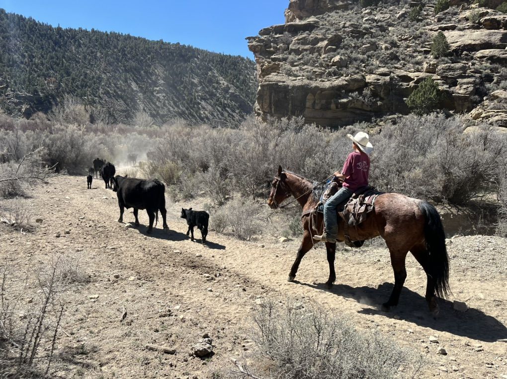 ZelleThis mare is 13 years old and is grade. She’s a cute roan that’s easy to ride but has some go on the trails and would be great for someone looking for a working ranch horse or trail horse/ hunting packing horse. This roan mare comes of one of the biggest ranches in Utah and does her job and as ranch horse well. Has been ranch roped off of.
