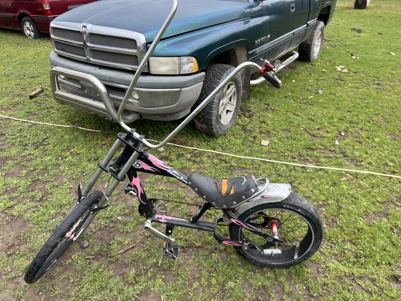 Vintage sting ray chopper bike it has been used and has a slight rip and a slight flat tire that can be fixed overall it’s a solid bike Asking 1200 or best offer