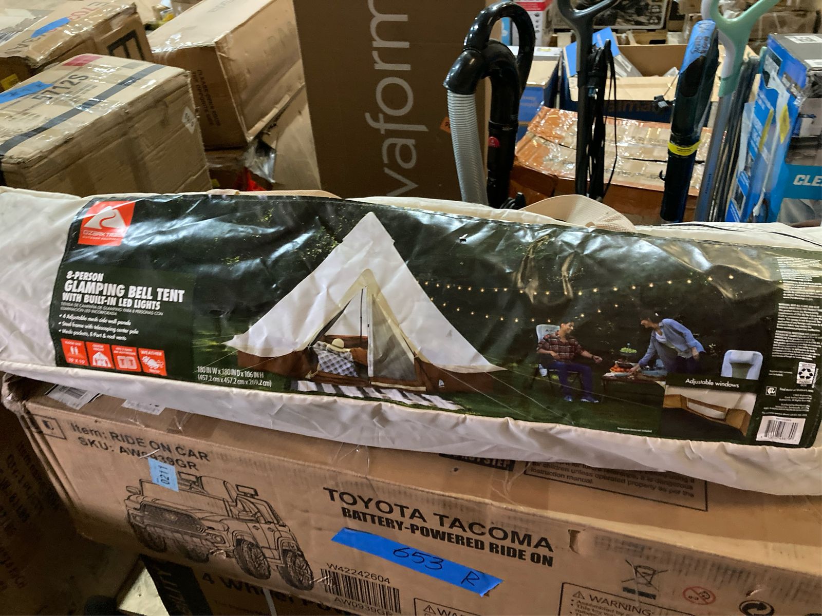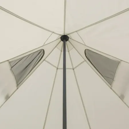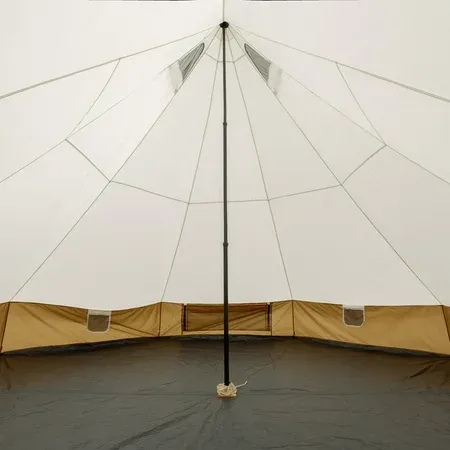 Bell-style structure for a luxury campsite feel Integrated three-mode string light system with on/off button included String lights have three modes: high, low and blinking 1,200mm water-resistant fabric on tent body Fits two twin airbeds or up to 8 people A-shape door and 5 mesh windows with a roof vent for optimal airflow Doormat for keeping shoes and gear off the ground E-port Dimensions: 15' x 15' x 106" (H)