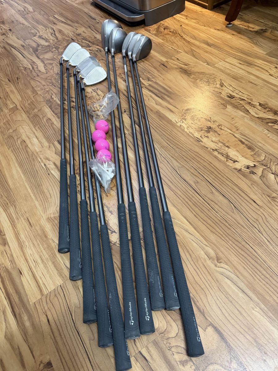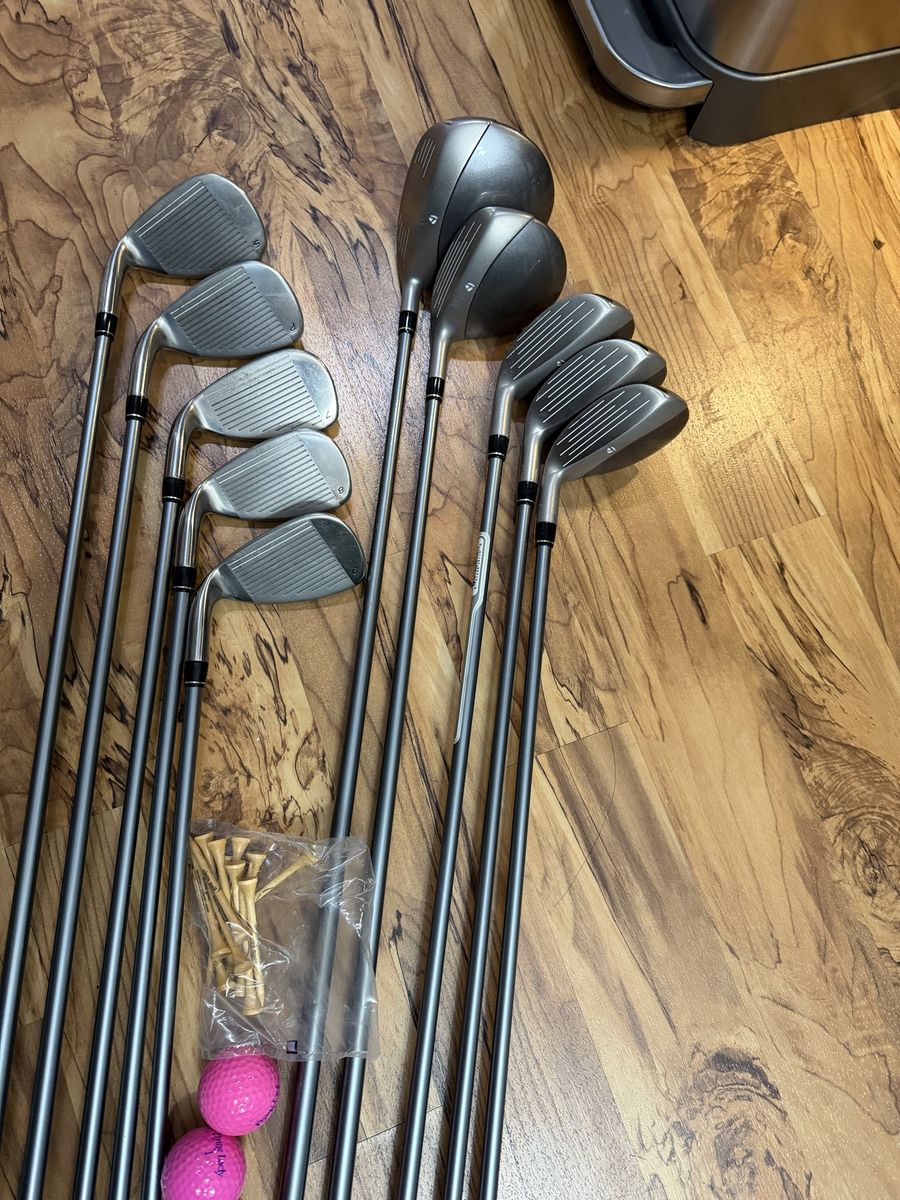 TaylorMade Miscela Club Set Driver 3W 4H-6H 7-PW+SW Miscela Ladies RH,2-Ball alignment and ODYSSEY DUAL FORCE ROSSE 11 And Ogio Vaporlite Golf Stand Bag Cheerwine Promo 8 Way Divider Red Black