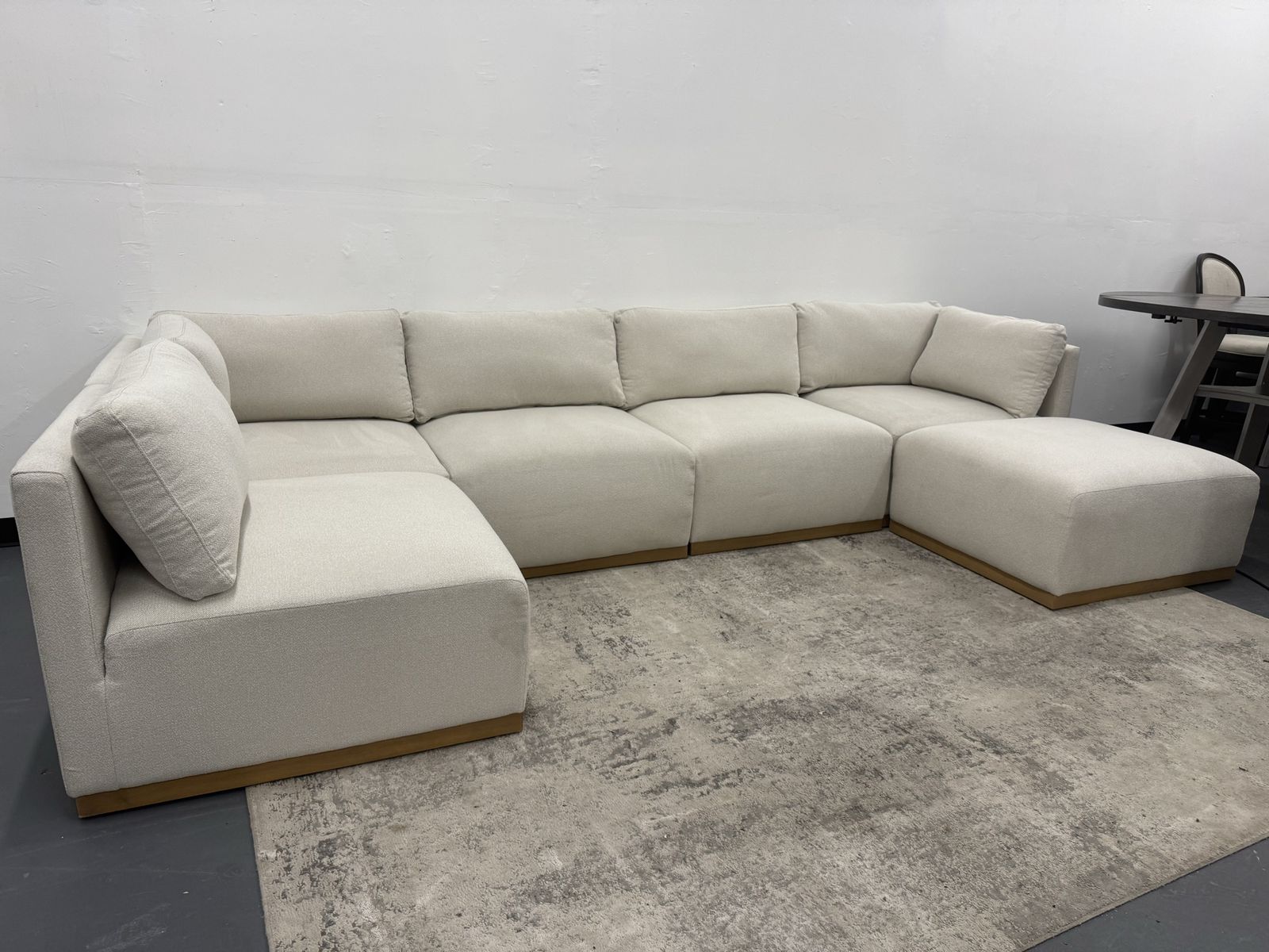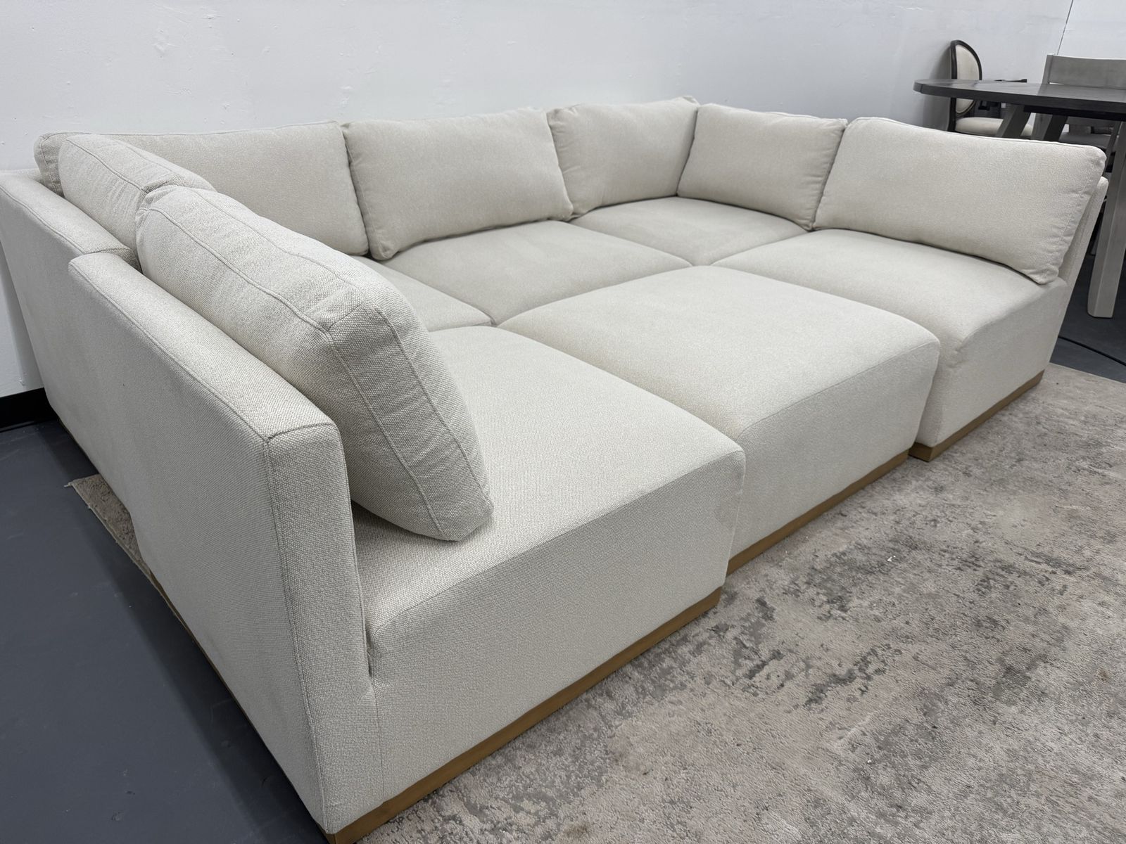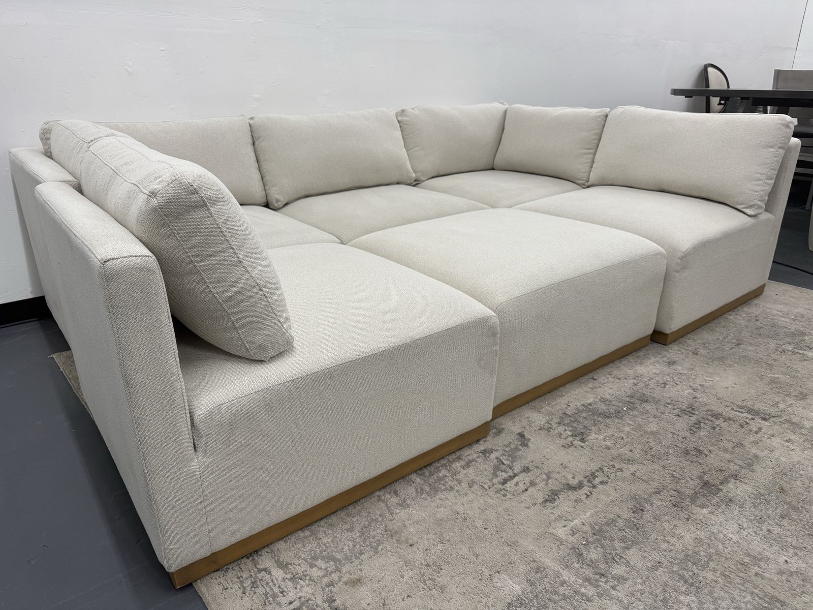 Features: Modern Style with a Clean Look Configurable Modular Design Loose and Reversible Back Cushions Waterfall Design Solid Wood Base Trim