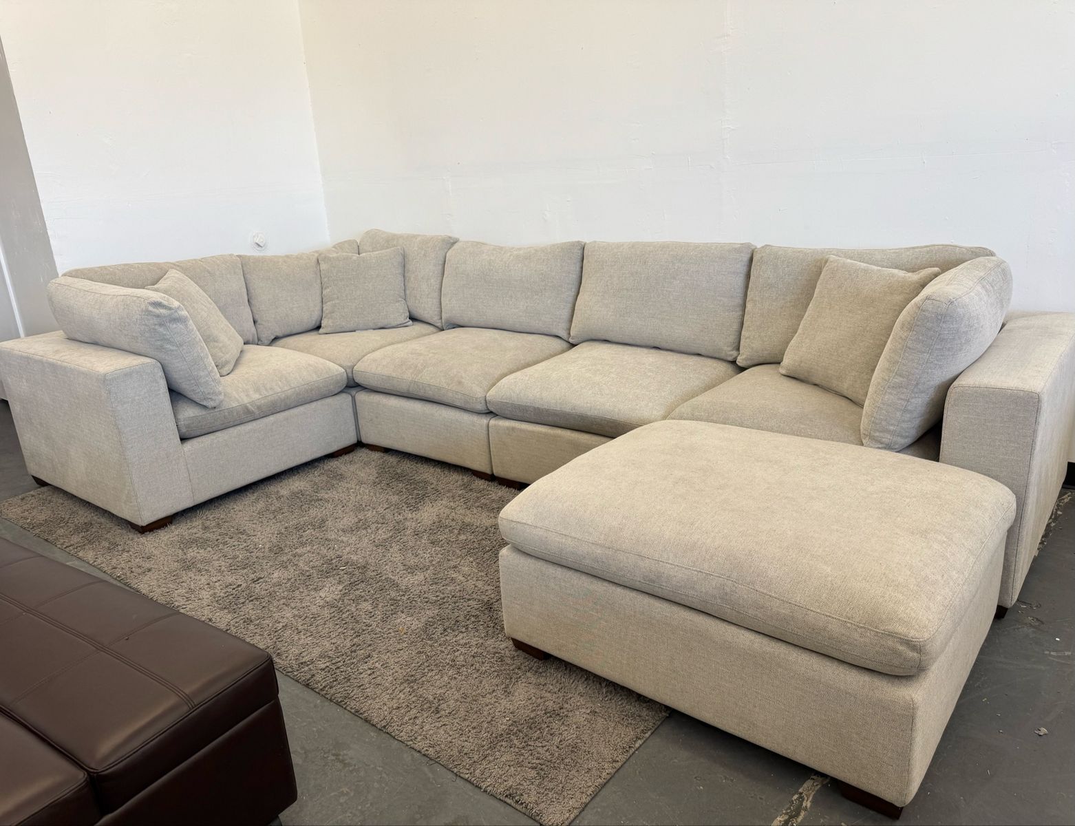 I am selling a Costco Thomasville Lowell 6-piece Fabric Modular Sectional sofa couch with Ottoman in good condition!