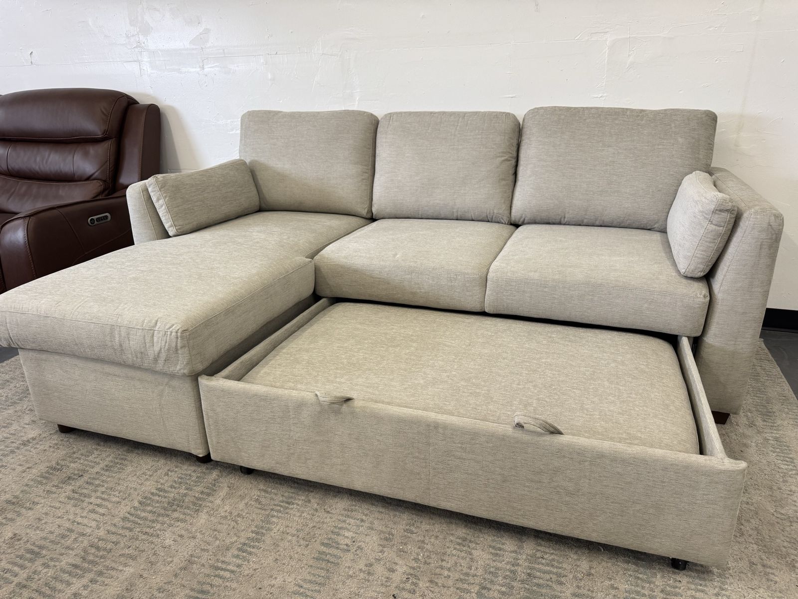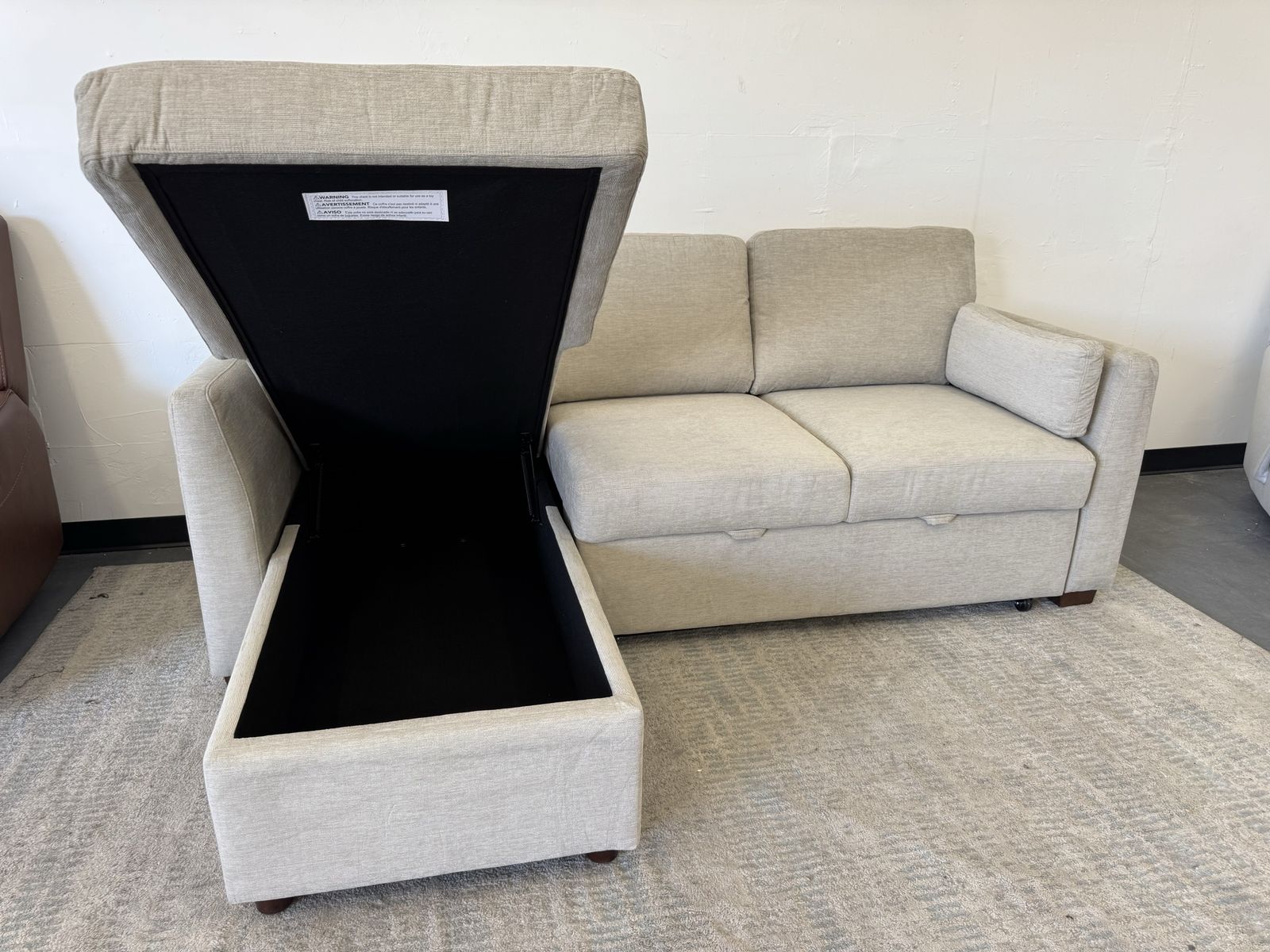 Features: Pull Out Sleeper Under Loveseat Under Chaise Lift Up Storage Compartment (2) Power Outlets and (2) USB Ports Chaise is Reversible
