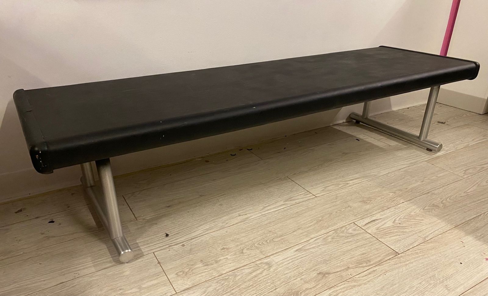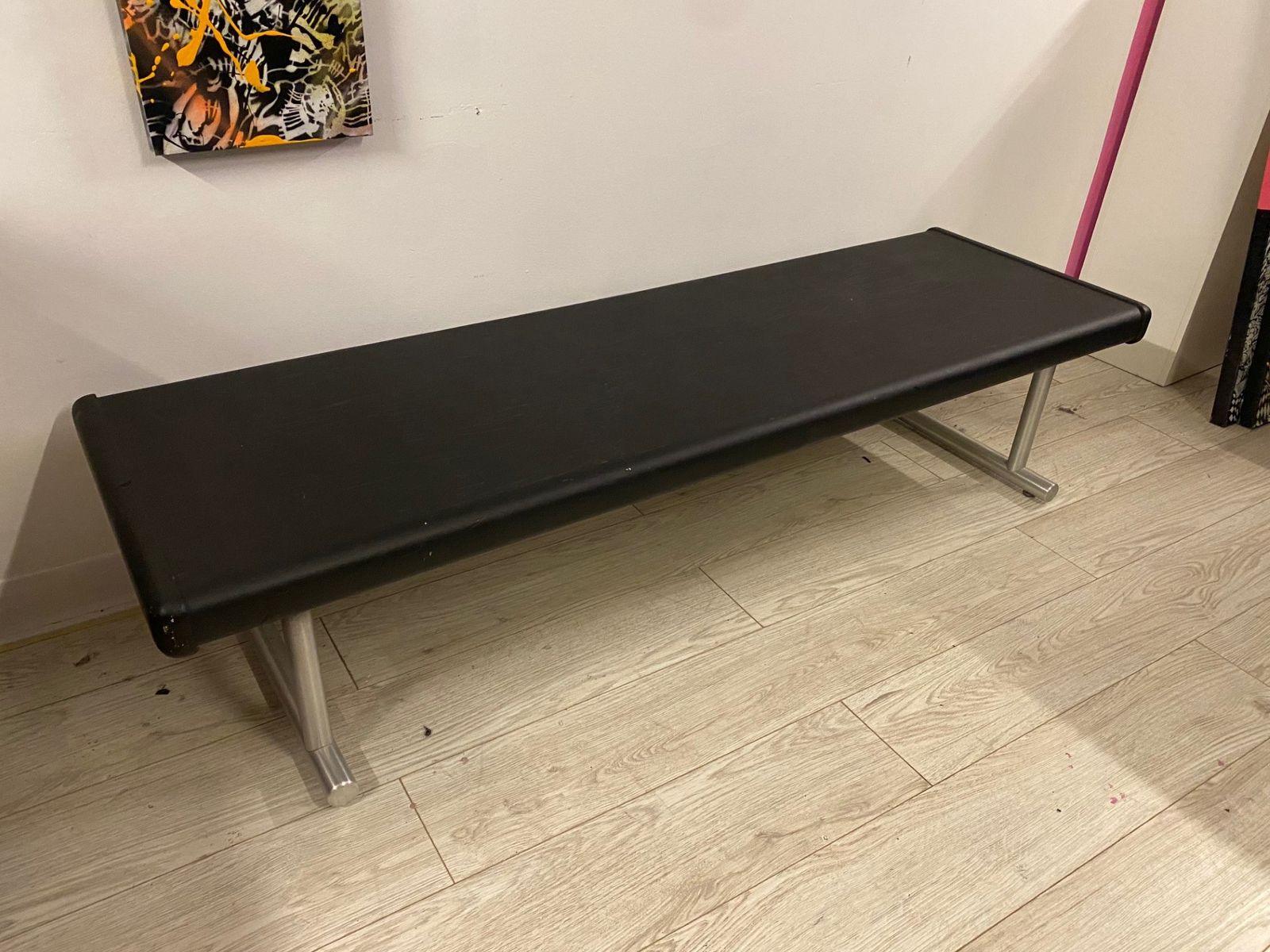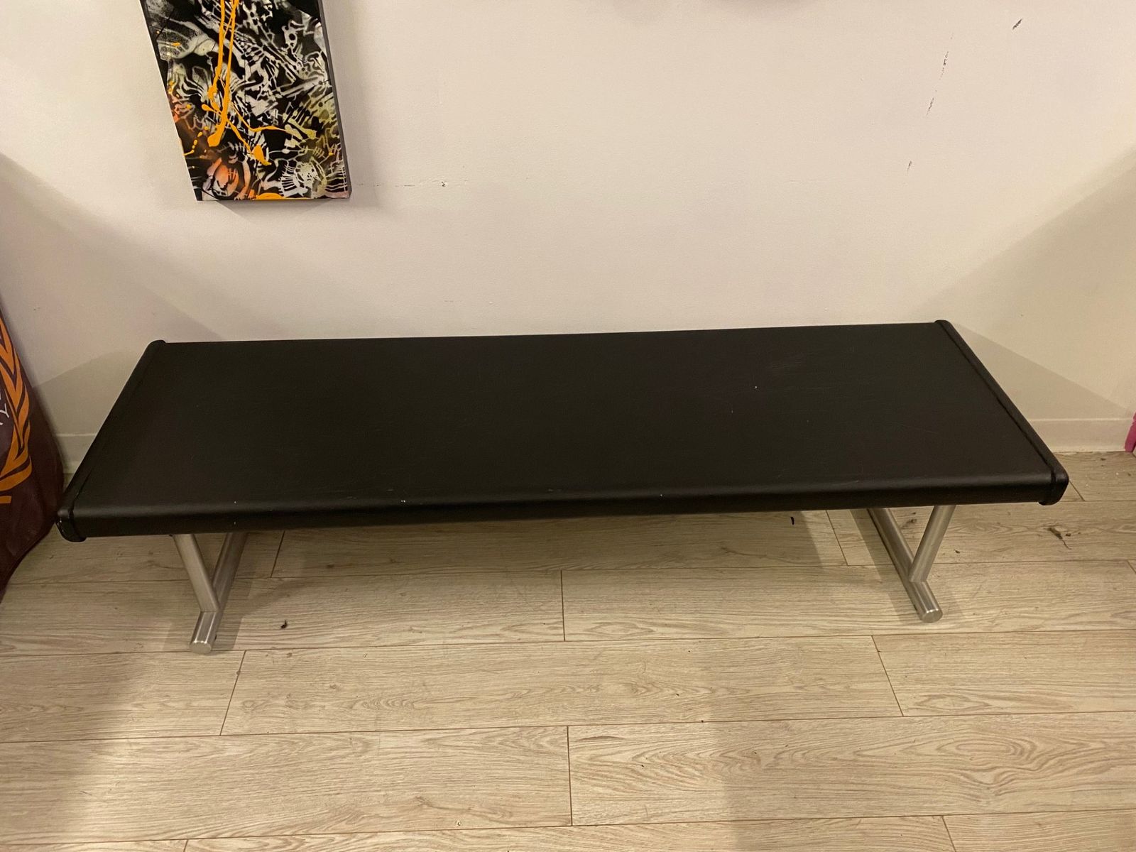 Heavy-Duty Build: Solid wood and reinforced metal legs for lasting strength Modern Aesthetic: Clean black finish with industrial-style legs Versatile Use: Perfect for entryway, gallery, studio, or extra seating Low Profile Design: Wide and stable, ideal for multiple uses