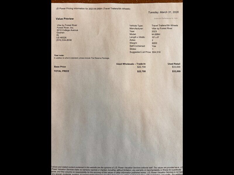 2023 Forest River Vibe 26BH LIKE NEW !!! Great family unit Private Queen bedroom Large Bunks Dinette Bed couch bed Outside entrance to bathroom. solar on roof satellite prep and More !!! Come check it out for yourself 2705 South 60 East 84790 right next to the Pilot Truck Stop! www.premierrvbrokers.com call or text Wade 435-229-3484 Danny 435-862-7589 or call the office:435-673-5388